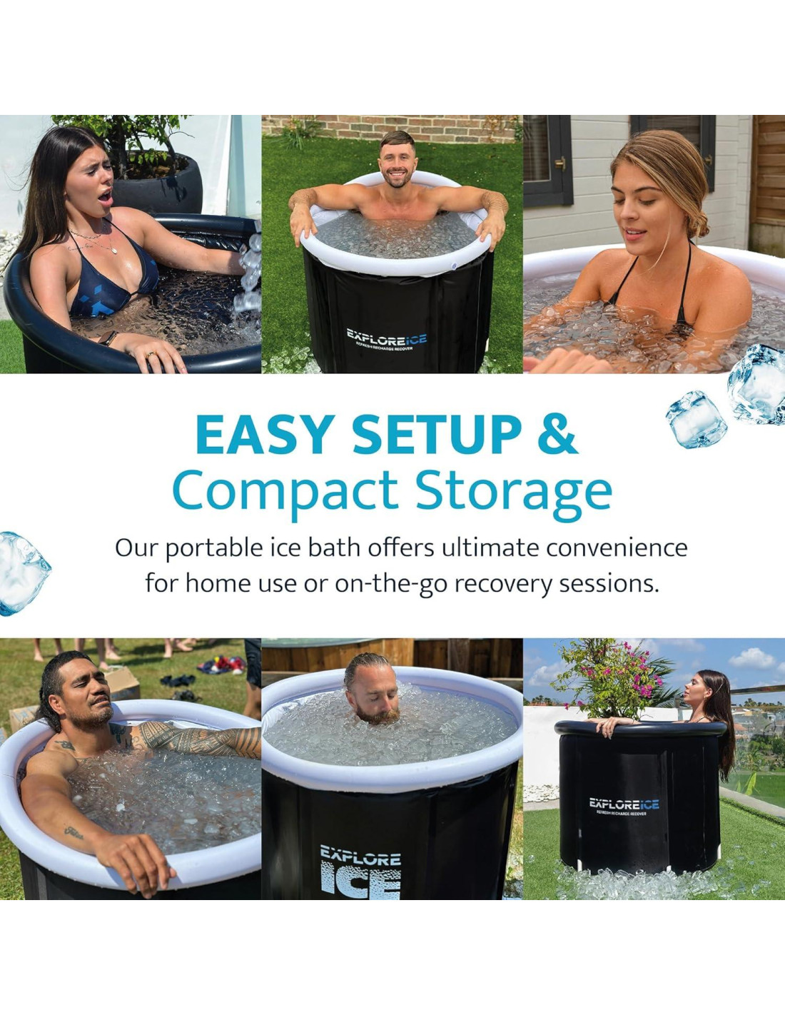 - Bañera de Hielo Portátil: Sumérgete en tu experiencia de bañera de hielo con la Explorar Bañera de Hielo Pro Max. Esta bañera de hielo es una herramienta ideal para cualquiera que quiera apoyar la rápida recuperación muscular y el bienestar general.
