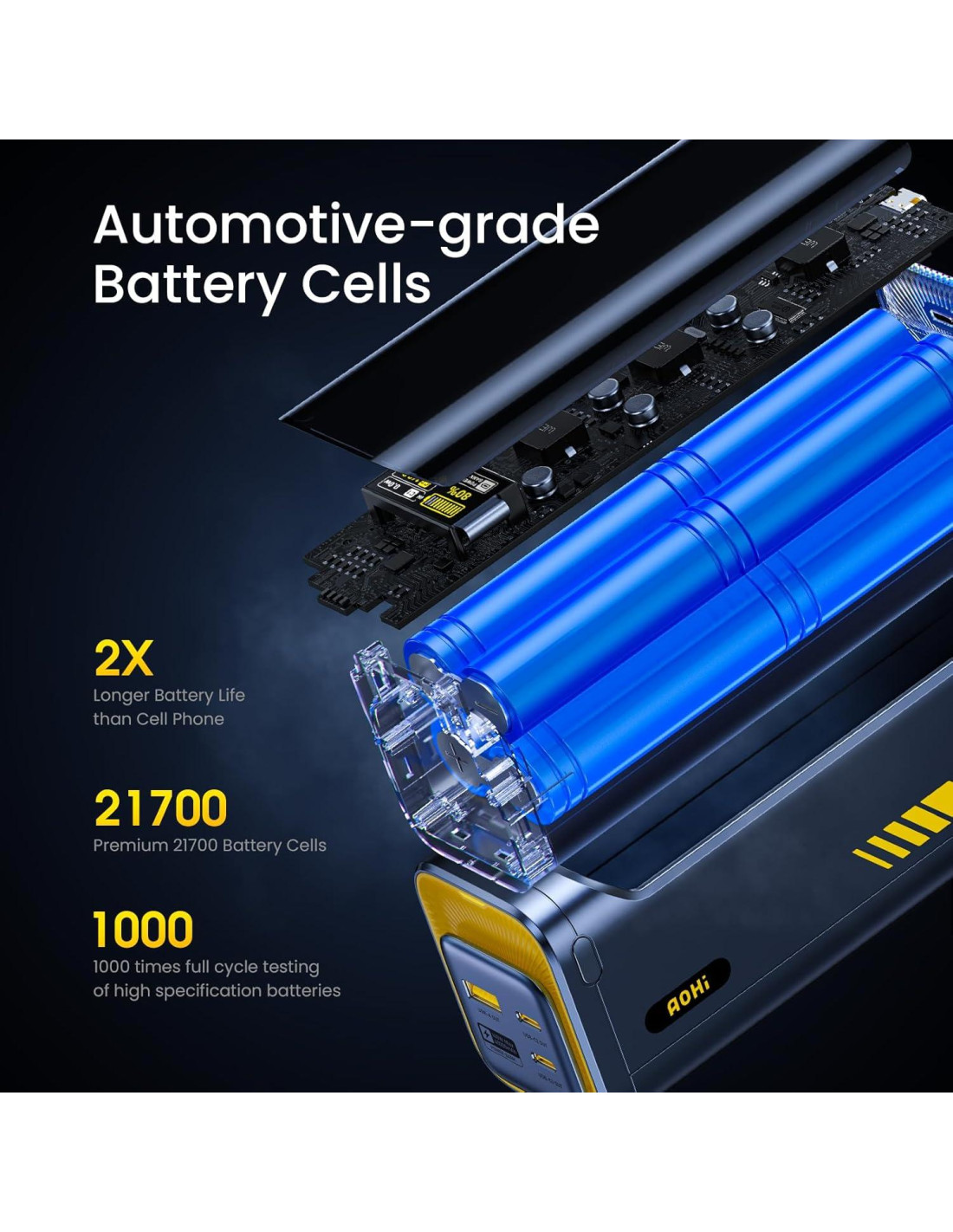 - Núcleo de Batería de Alta Calidad, Múltiples Sistemas de Protección de Seguridad. AOHI Nave Espacial utiliza celdas de batería de grado automotriz que son conocidas por su seguridad y eficiencia líder en la industria. 9 protecciones de carga aseguran la seguridad de la Nave Espacial, tu dispositivo de carga y de ti mismo. La batería de alta capacidad de 40,000mAh asegura que tus dispositivos permanezcan completamente cargados en cualquier momento y lugar. Soportando múltiples recargas, satisface las demandas de uso prolongado, proporcionando una vida útil de batería sin preocupaciones