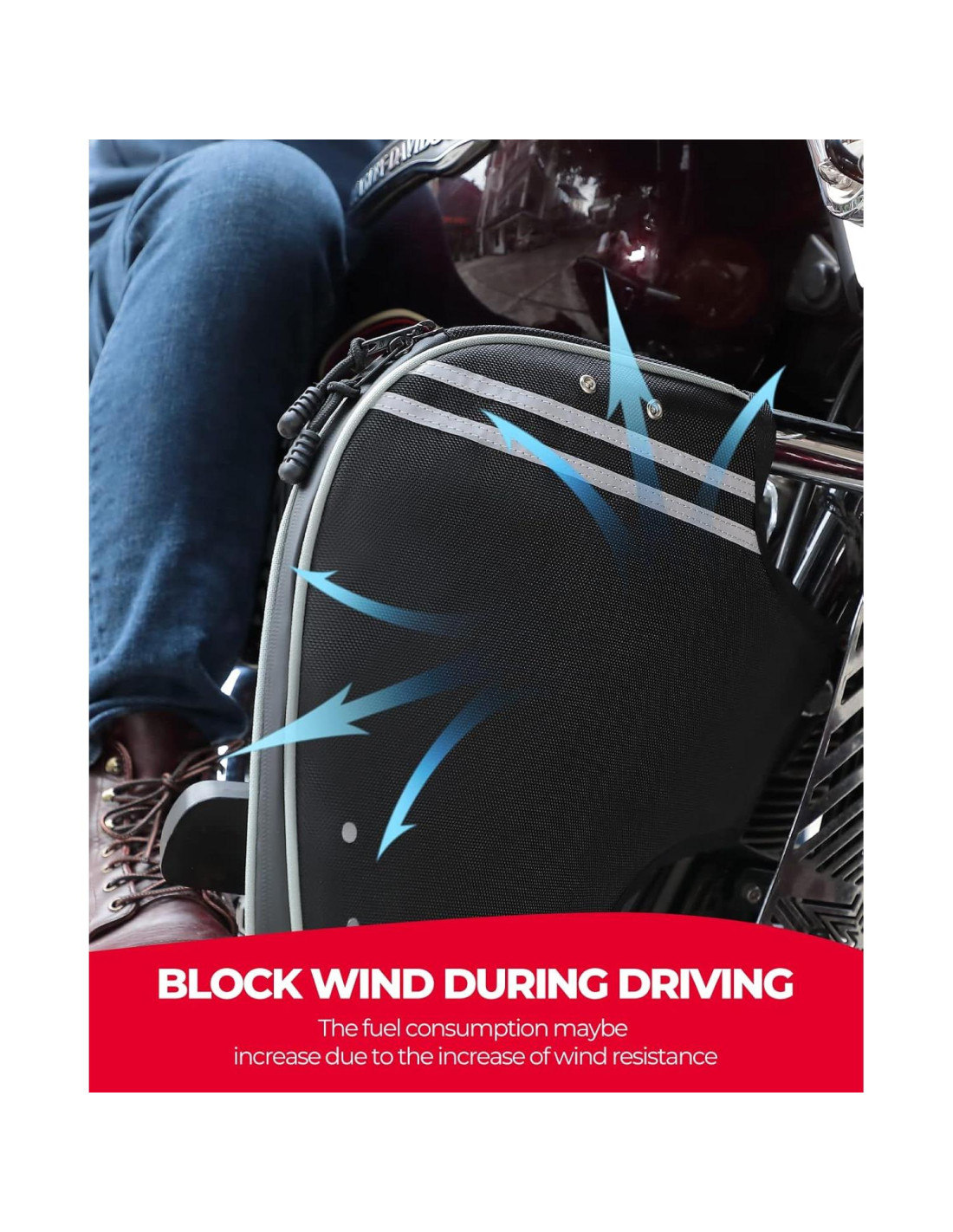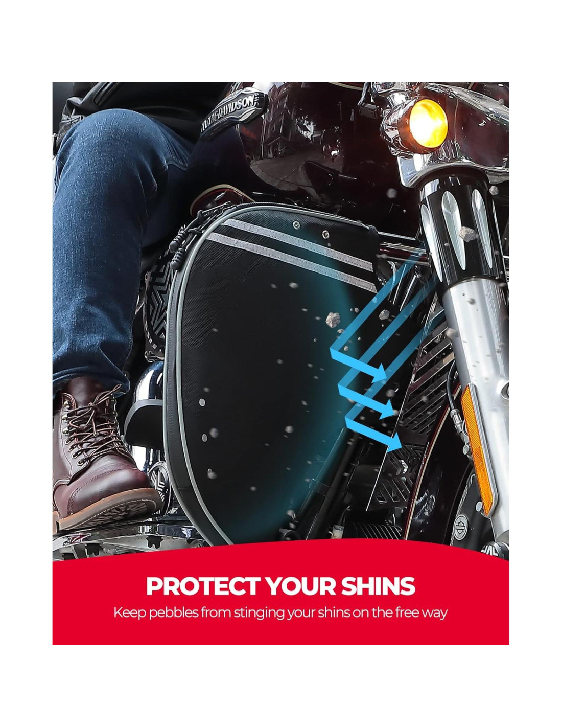 - Protege tus Espinillas y Mantente Cálido: Estas cubiertas de protectores de motor mantendrán la mayoría de las pequeñas piedras que saltan en la carretera de golpear tus espinillas. Además, ayudan a desviar la lluvia y el viento de mis piernas y mantenerme cálido durante días frescos