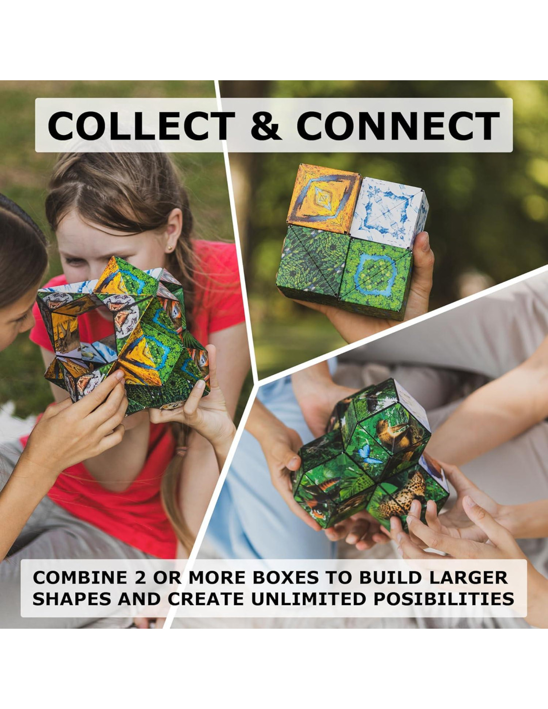 - Colecciona y conecta - con el fuerte sistema de imanes internos de nuestras cajas de rompecabezas sensoriales, puedes conectar múltiples cubos magnéticos para construir estructuras y esculturas aún más grandes - para el juguete sensorial magnético y rompecabezas más satisfactorio. ¡Elige entre más de 50 diseños para crear arte 3D vibrante y cautivador!