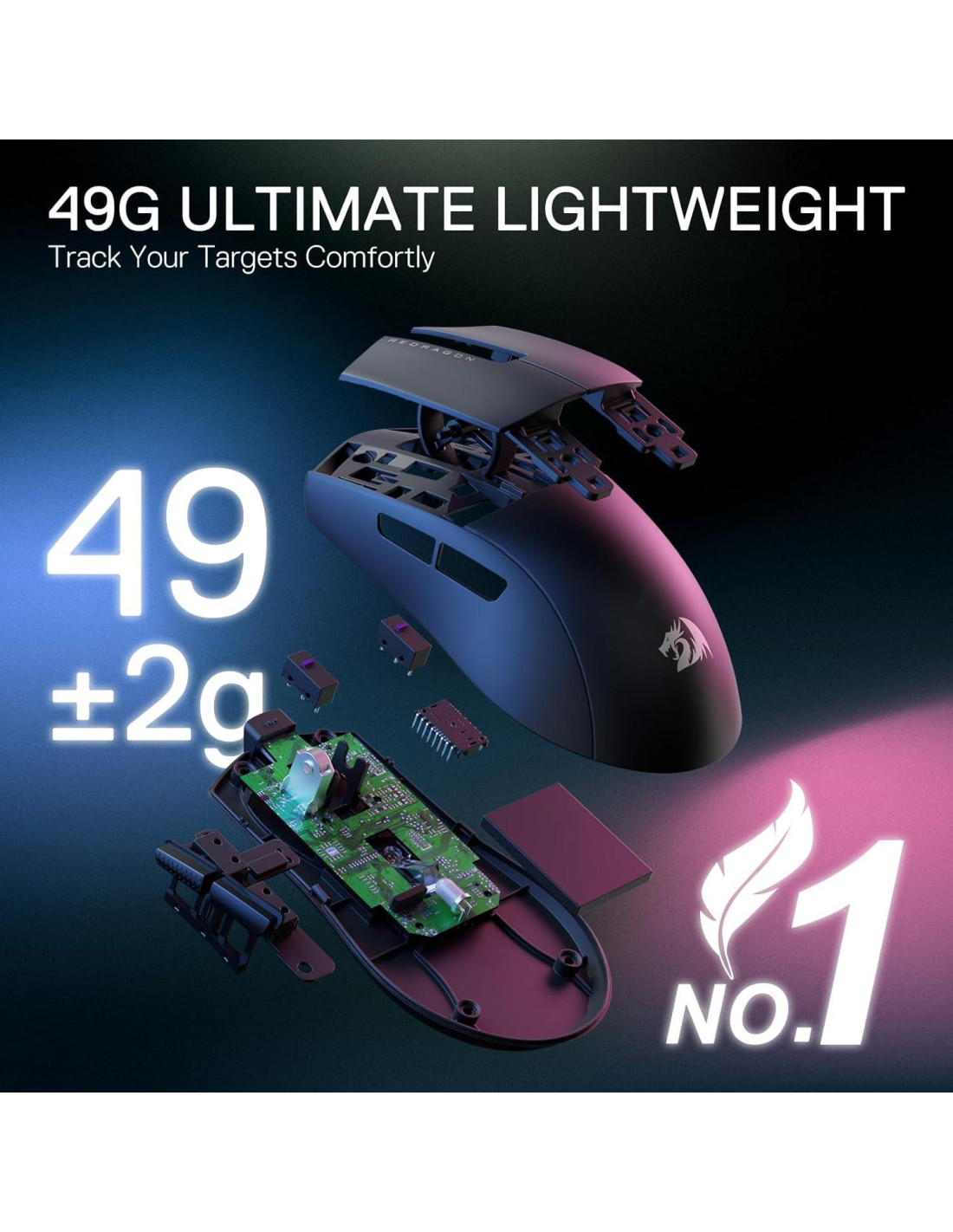 - 49 Gramos Ligero - El ratón Redragon más LIGERO, seleccionado con materiales ultra-ligeros y una forma bien elaborada para ofrecer el uso del ratón más rápido, limpio y completamente controlado. Controlas el ratón sin complicaciones y sin esfuerzo adicional.