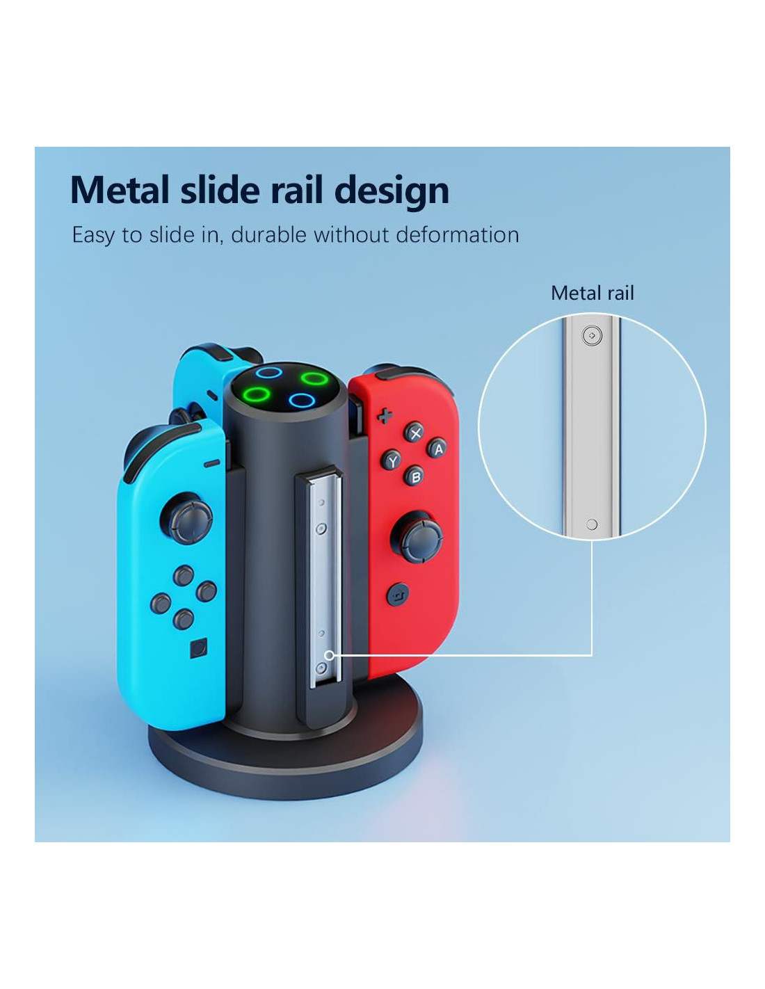- Estación de Acoplamiento para Switch que Ahorra Espacio: Para que puedas deslizar fácilmente el soporte de juegos de switch / Controladores Joy-con; LED individuales indican el nivel de carga de cada Joy Con simplemente conecta la estación de acoplamiento y carga usando energía de tu consola de juegos o cualquier puerto USB, es un accesorio de nintendo switch
