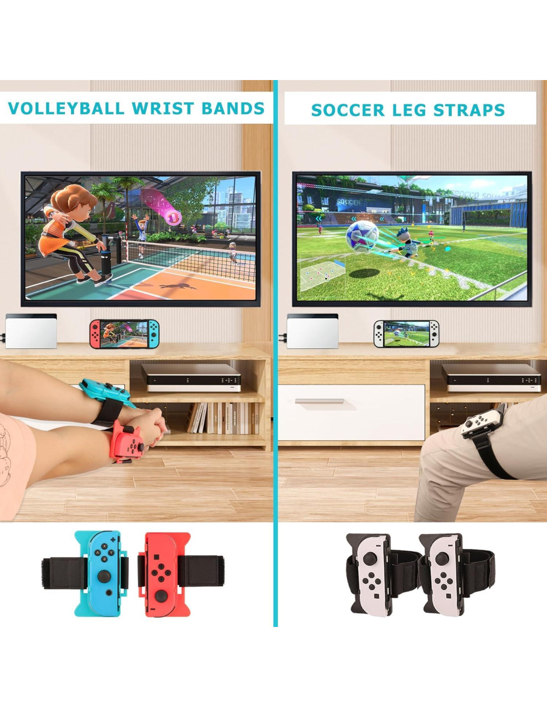 - Diseño Ergonómico y Cómodo Este kit de accesorios para deportes de switch está diseñado ergonómicamente para ser cómodo de sostener. Las correas para pierna de fútbol y las muñequeras de voleibol con diseño de Velcro, ajustabilidad de la tensión, fácil y cómodo en el juego. Adecuado para adultos y niños.