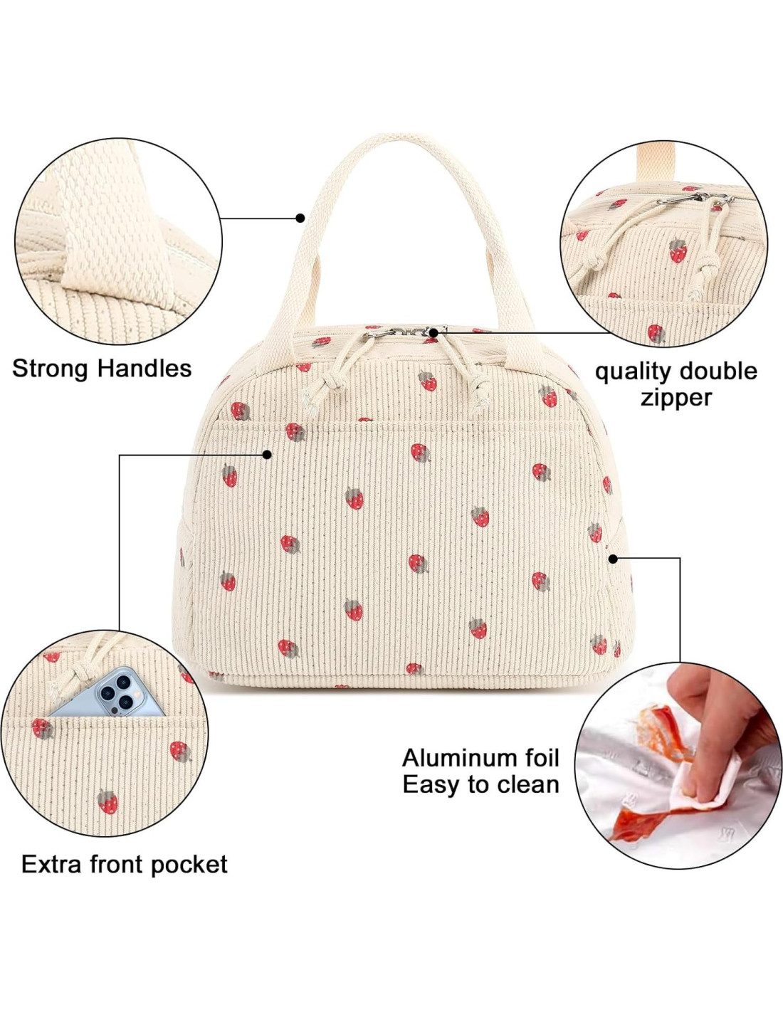 - Estilo Corduroy y Ampliamente Usada: La Bolsa de Almuerzo de Corduroy es adecuada para cualquier persona, incluidos adultos, hombres y mujeres. El diseño moderno y a la moda te hace lucir linda en todas las ocasiones. La bolsa de almuerzo viene en una variedad de colores vibrantes, es una buena idea de regalo para ti y tus amigos/esposa/hijo/hija/madre. La bolsa de almuerzo es una bolsa de utensilios portátil adecuada para varias ocasiones, como trabajo, viaje, playa, picnics, fiestas, oficina y al aire libre.