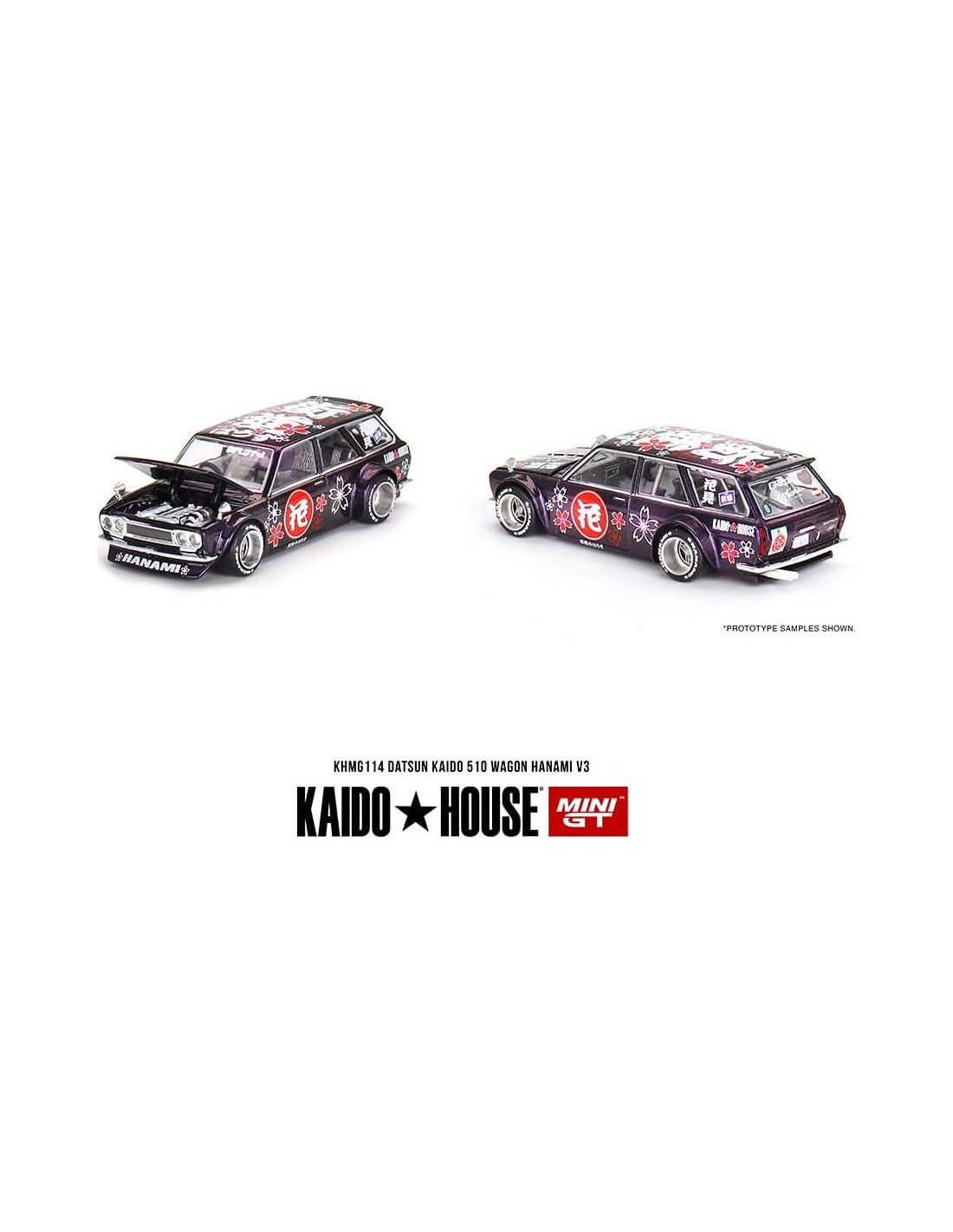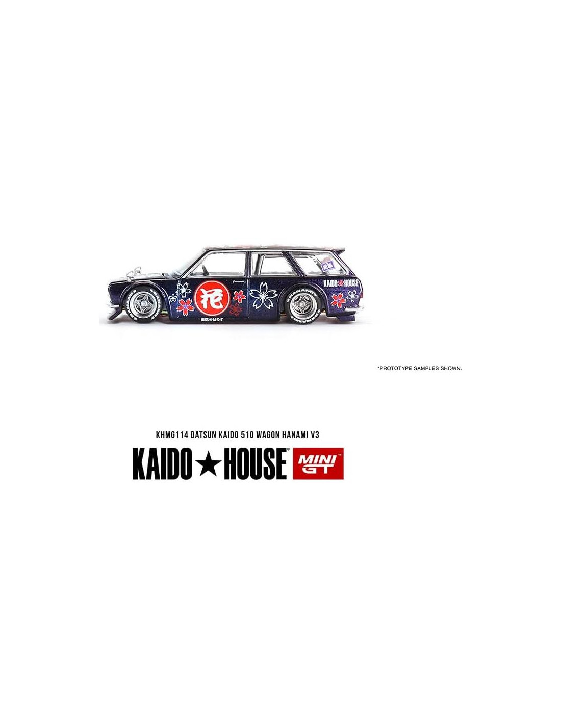 Modelo de Coche de Miniaturas a Escala Verdadera Compatible con Datsun KAIDO 510 Wagon Hanami V3 Morado Mágico Edición Limitada 1/64 Modelo de Coche Diecast Kaido House KHMG114