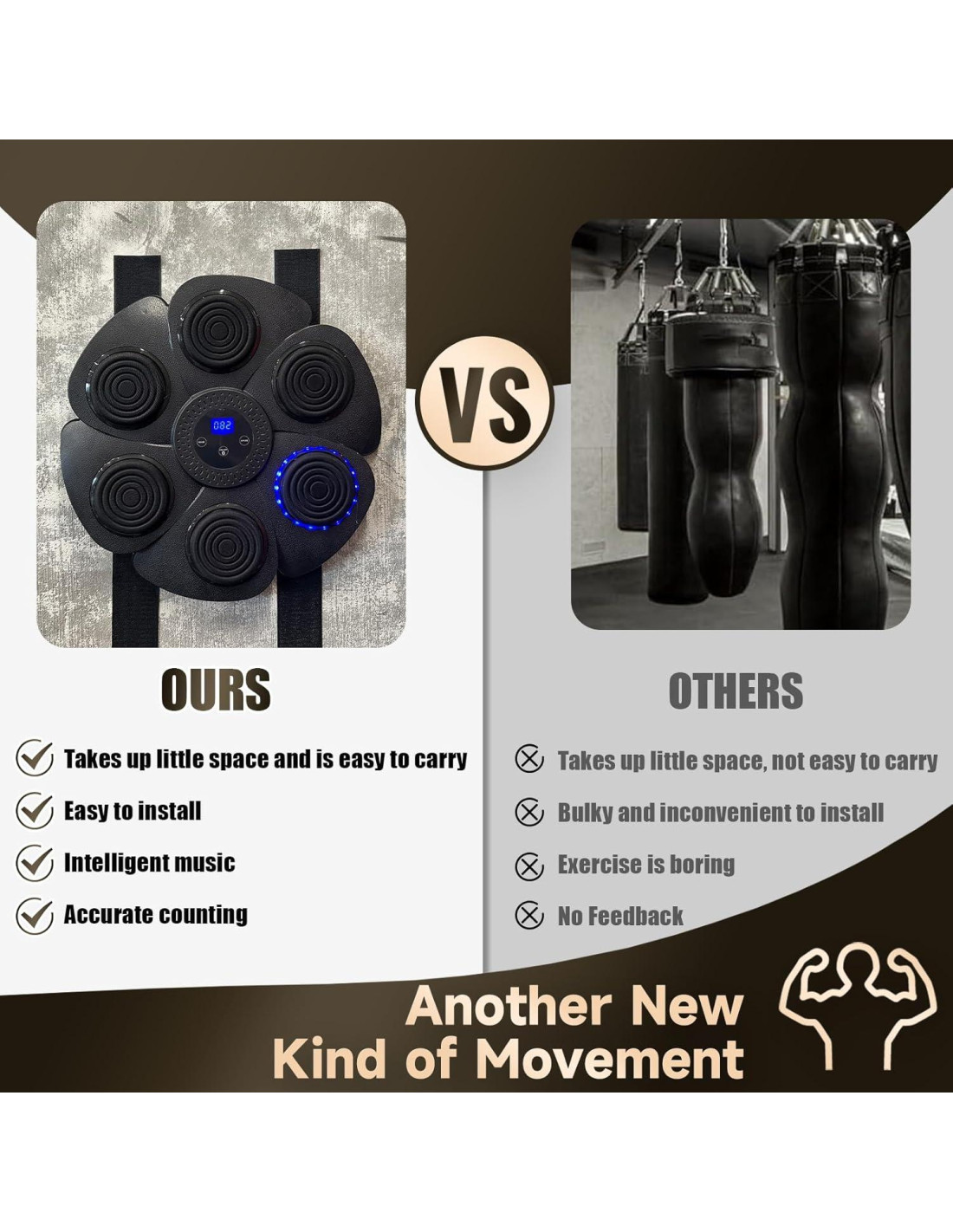 - [Bluetooth Inteligente] Esta máquina de boxeo Bluetooth inteligente soporta conexión inalámbrica Bluetooth, altavoces integrados, mostrando efectos de iluminación rítmica, dándote la libertad de elegir tu música favorita, equilibrando diversión y desafío con un entrenamiento muscular completo, mejorando los reflejos y disfrutando del entretenimiento.