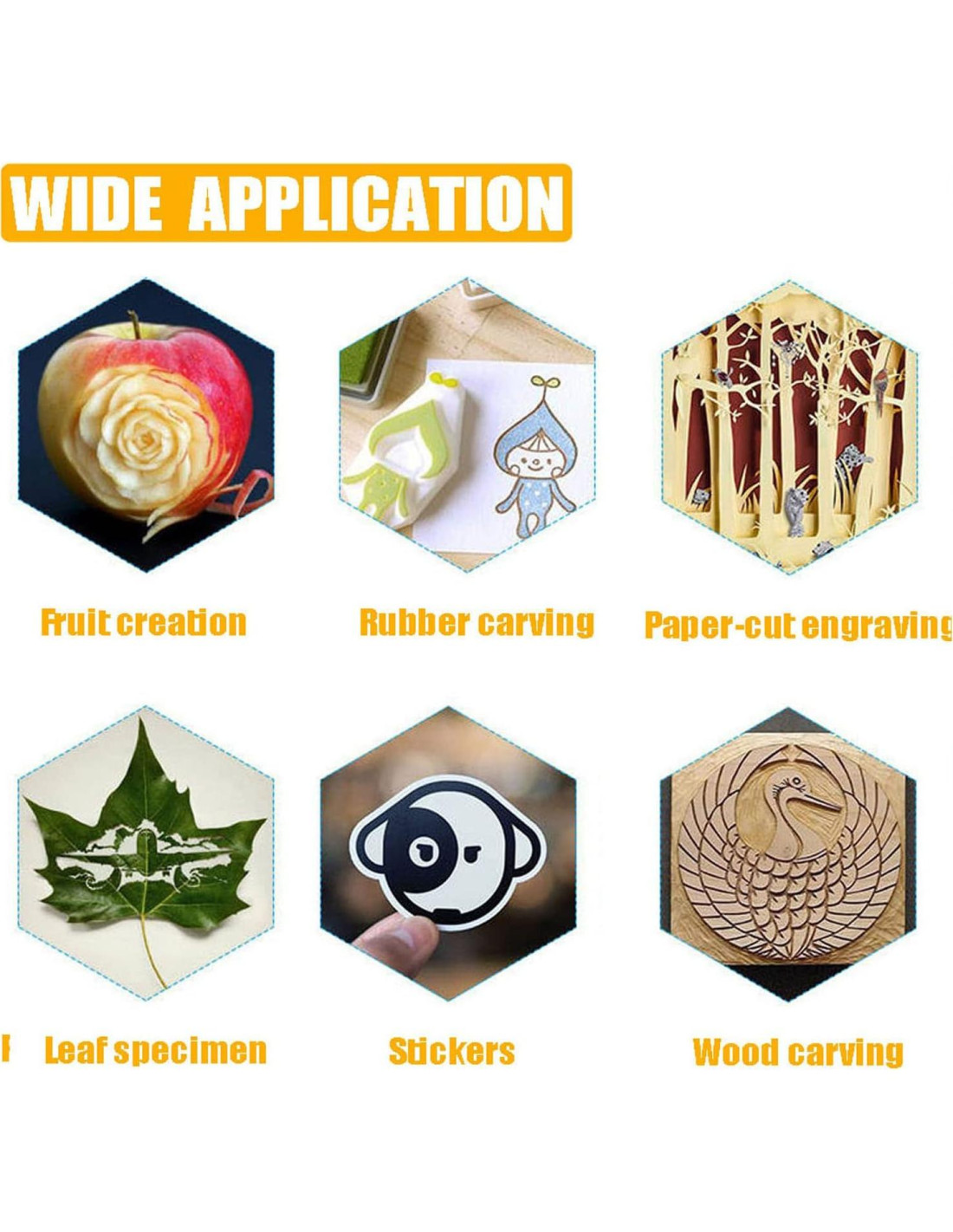- Calidad Premium: Este kit de cuchillos de manualidades está construido con materiales de alta calidad. La hoja de acero afilada es robusta y puede satisfacer tus diversas necesidades