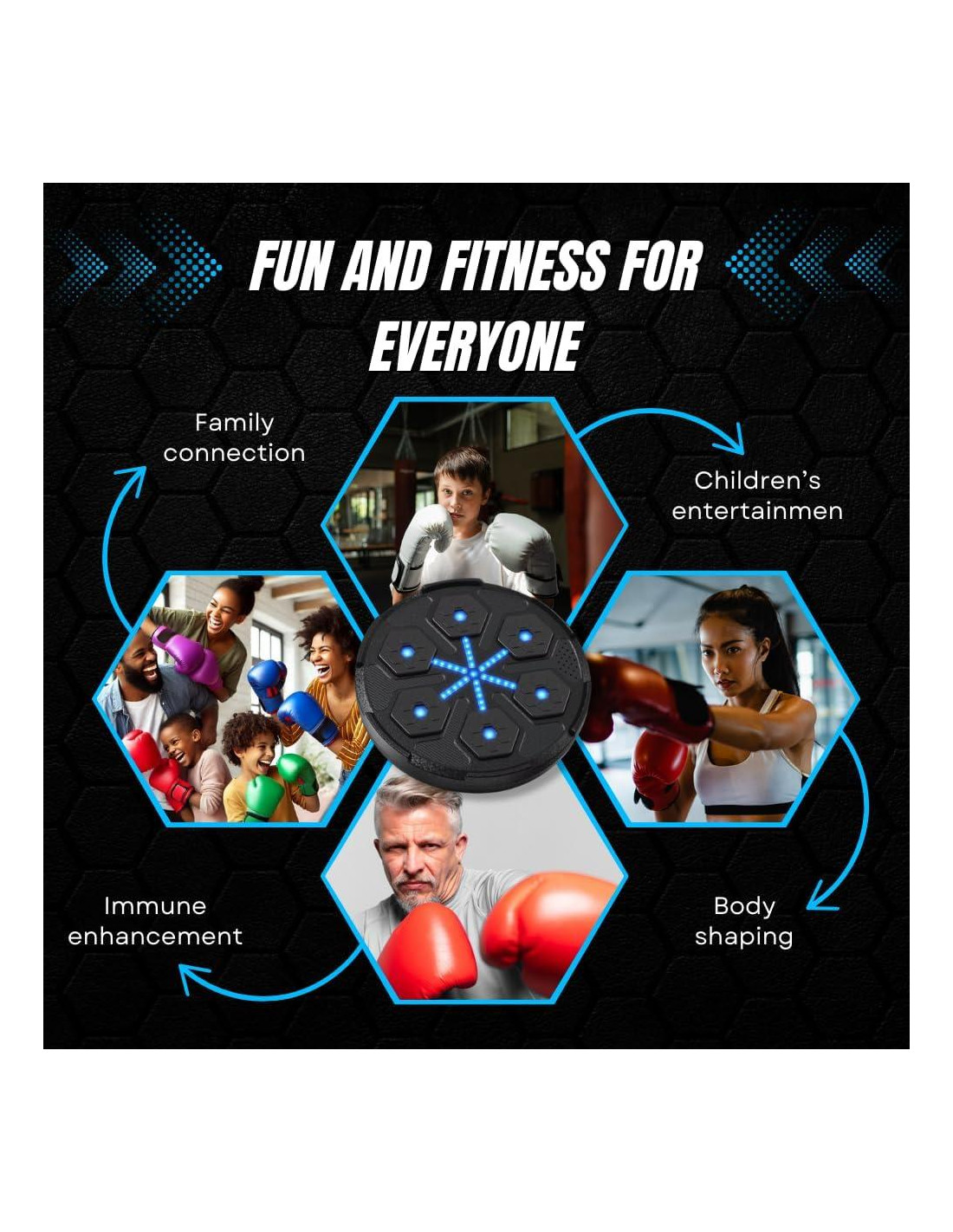 - Tecnología de Sincronización de Ritmo Avanzada: Eleva tu entrenamiento con luces LED sincronizadas y ritmos de golpe dinámicos que se adaptan al ritmo de la música. Esta característica única ayuda a mejorar la velocidad de reacción y la efectividad del entrenamiento, ideal para cualquiera que busque una experiencia de boxeo desafiante pero entretenida.