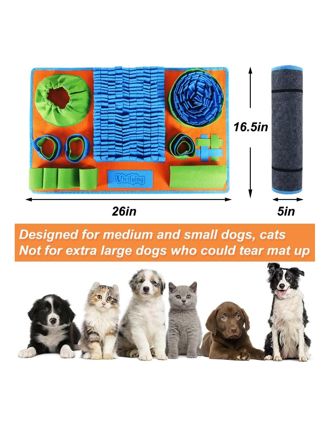 - ADECUADO PARA PERROS PEQUEÑOS Y MEDIANOS, GATOS - El tamaño de esta alfombra de olfato es 26 x 16.5 inches (66,04 x 41,91 cm), que es perfecta para perros pequeños, perros medianos, gatos y conejos, NO recomendada para perros extra grandes y masticadores agresivos que podrían destrozarla