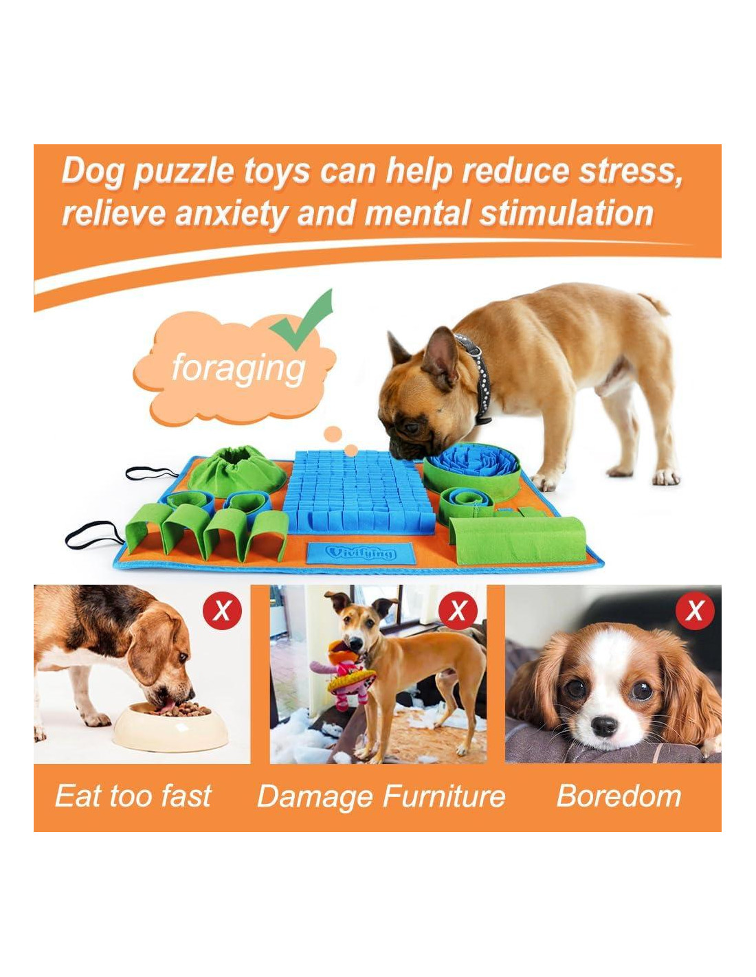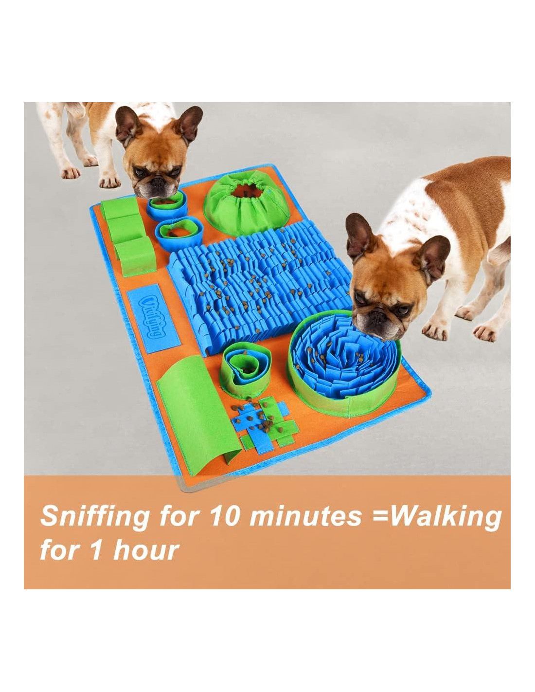 - 8 LUGARES DIFERENTES PARA ESCONDER TRATOS - Esta alfombra de olfato para perros contiene 8 lugares diferentes para esconder comida o golosinas, aumentando la diversión, el desafío y la intensidad del entrenamiento de forrajeo. Te permite disfrutar del tiempo feliz de interactuar con tus perros y evitar que tu perro destruya los muebles debido al aburrimiento