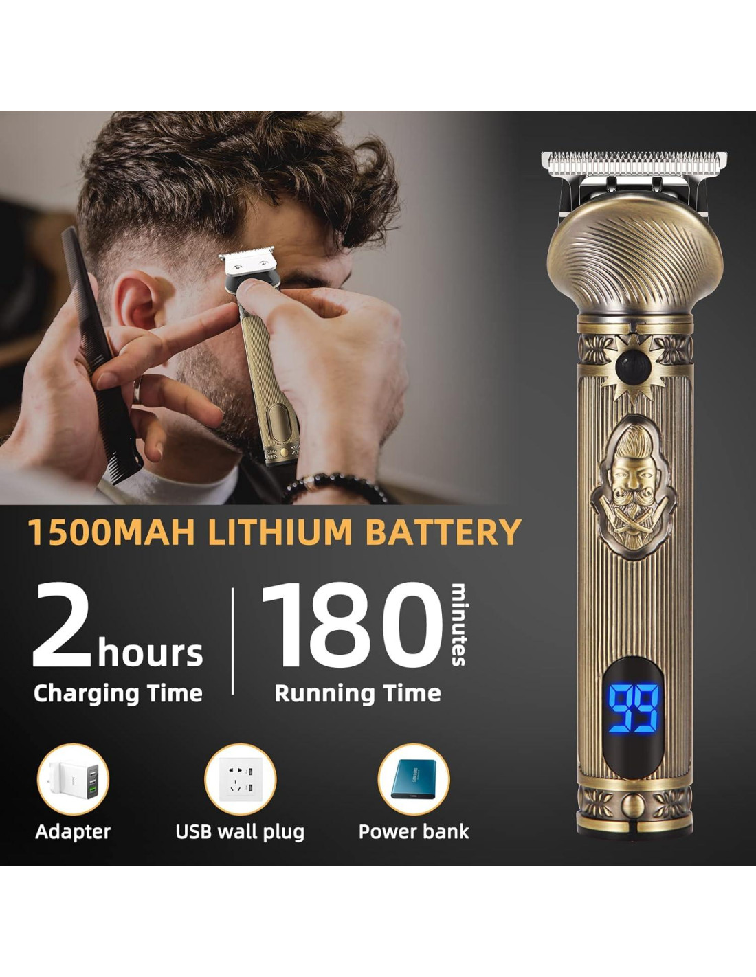 - Recortadora de Cabello Todo-en-Uno para Hombres: Este kit de aseo de barba para hombres presenta un diseño inspirado en el steampunk vintage, siendo más que solo un recortador de bigotes funcional: es una pieza de declaración que deja brillar tu carácter con cada recorte
