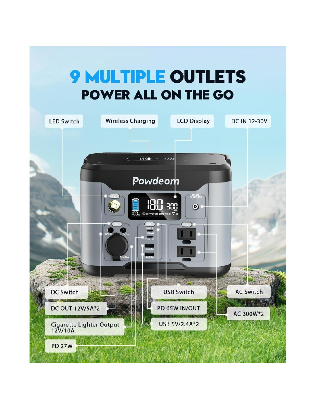 - LO QUE OBTIENES: Powdeom 1* estación de energía portátil EV300, 1* adaptador AC, 1* cable de cargador de coche, 1* manual. Powdeom proporciona a nuestros queridos clientes una garantía de 12 meses a partir de la fecha de compra y un servicio al cliente amigable. Si tienes alguna pregunta o inquietud, no dudes en contactarnos.