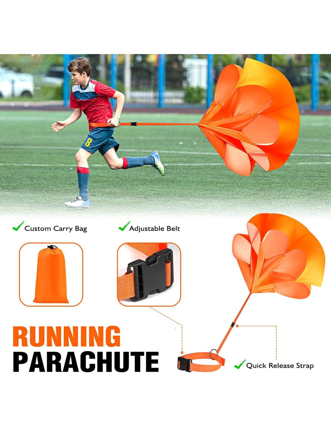 - Componentes incluidos: Vallas de Agilidad, Paracaídas de Correr, Cuerda de Saltar, Conos de Fútbol, Escalera de Fútbol
