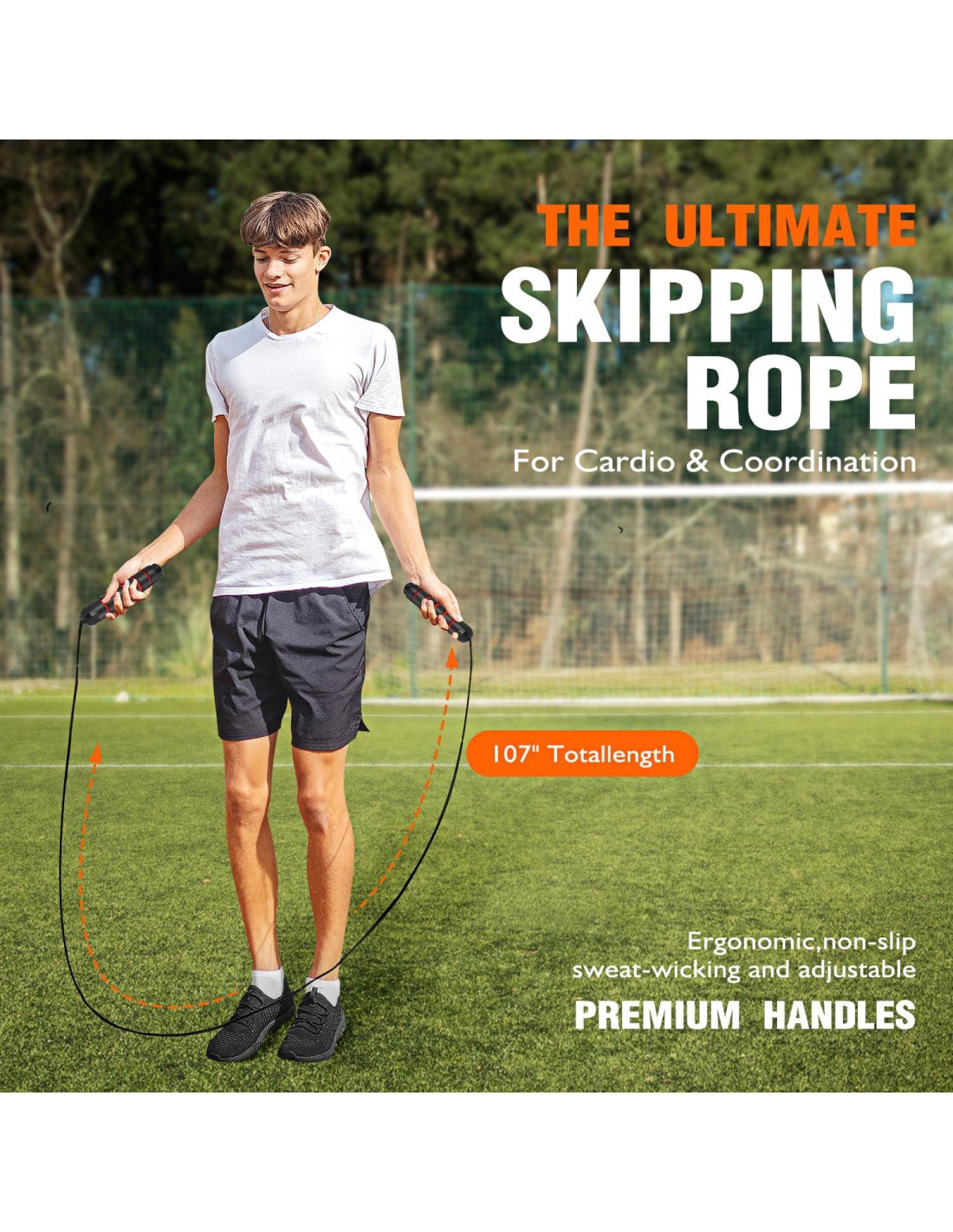 - Mejora tu Velocidad y Explosividad La cuerda de saltar incluida en nuestro conjunto de Equipo de Entrenamiento de Fútbol es una herramienta fantástica para mejorar tu resistencia aeróbica, stamina y velocidad. Saltar la cuerda es un entrenamiento de cuerpo completo que ayuda a fortalecer los músculos y mejorar la densidad ósea. Al usar regularmente nuestro conjunto de cuerdas de saltar, puedes dirigirte efectivamente a varios grupos musculares y promover una mejor salud ósea, llevando a un cuerpo más fuerte y resistente.