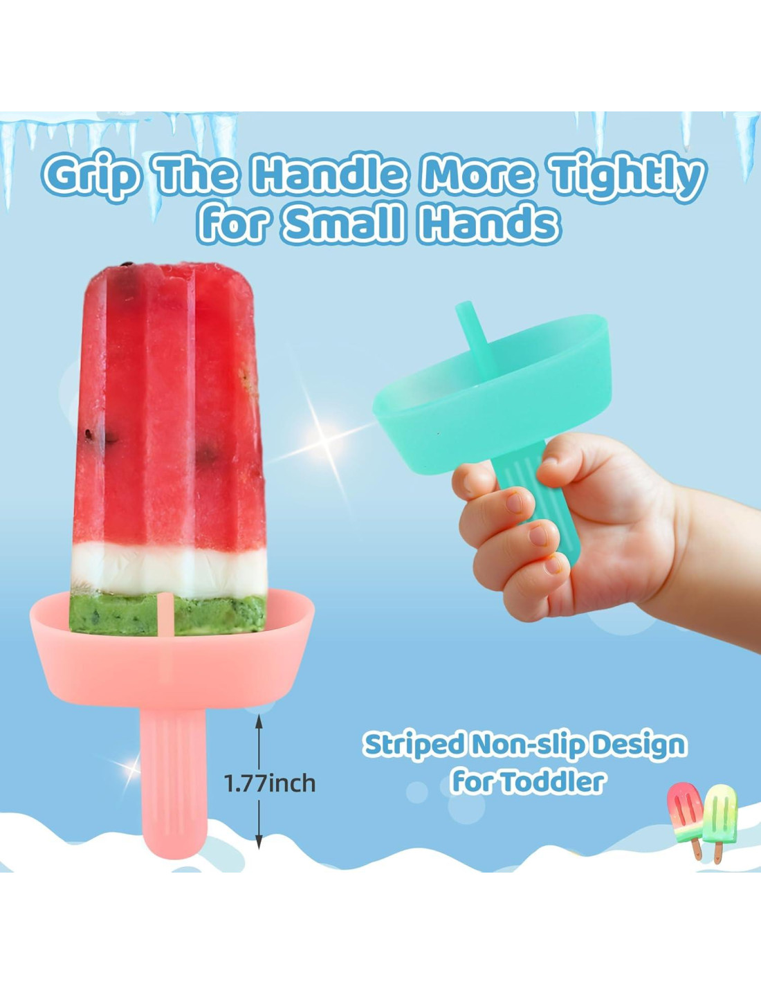 - Silicona de Grado Alimenticio y Fácil Limpieza: Hecho de silicona 100% libre de BPA, seguro para la masticación de los niños y suave con la piel. Incluye 5 sujetadores de paletas reutilizables; la superficie lisa resiste manchas y se limpia fácilmente con agua