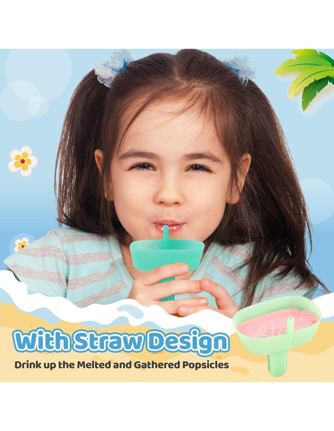 - Diseño Sin Goteo con Pajita Incorporada: La bandeja de goteo integrada atrapa la paleta que se derrite, evitando desorden pegajoso en la ropa. Los niños pueden sorber la paleta derretida a través de la pajita, reduciendo el desperdicio y añadiendo un bocadillo divertido!