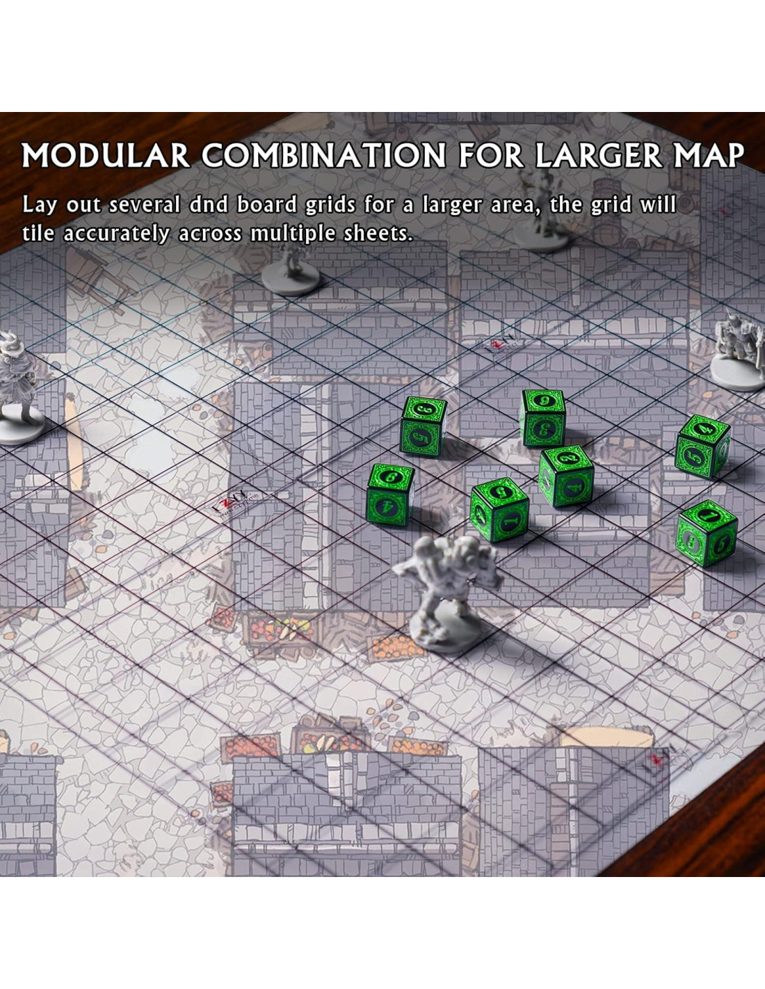 - COMBINACIÓN MODULAR PARA MAPAS MÁS GRANDES - Coloca varias cuadrículas de tablero de dnd para un área más grande, la cuadrícula se alineará con precisión a través de múltiples hojas. Así que puedes conseguir algunas más para mapas aún más grandes.