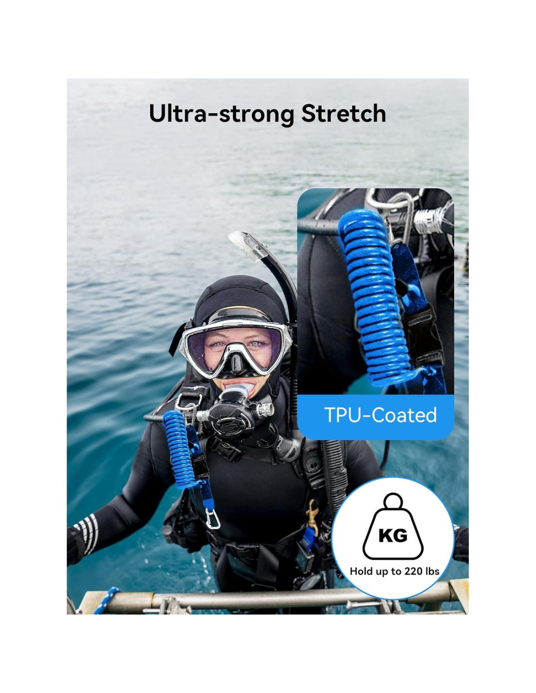 Lanyard de Buceo en Espiral, Lanyard de Cámara de Acero Inoxidable en Espiral con Hebilla de Metal de Liberación Rápida