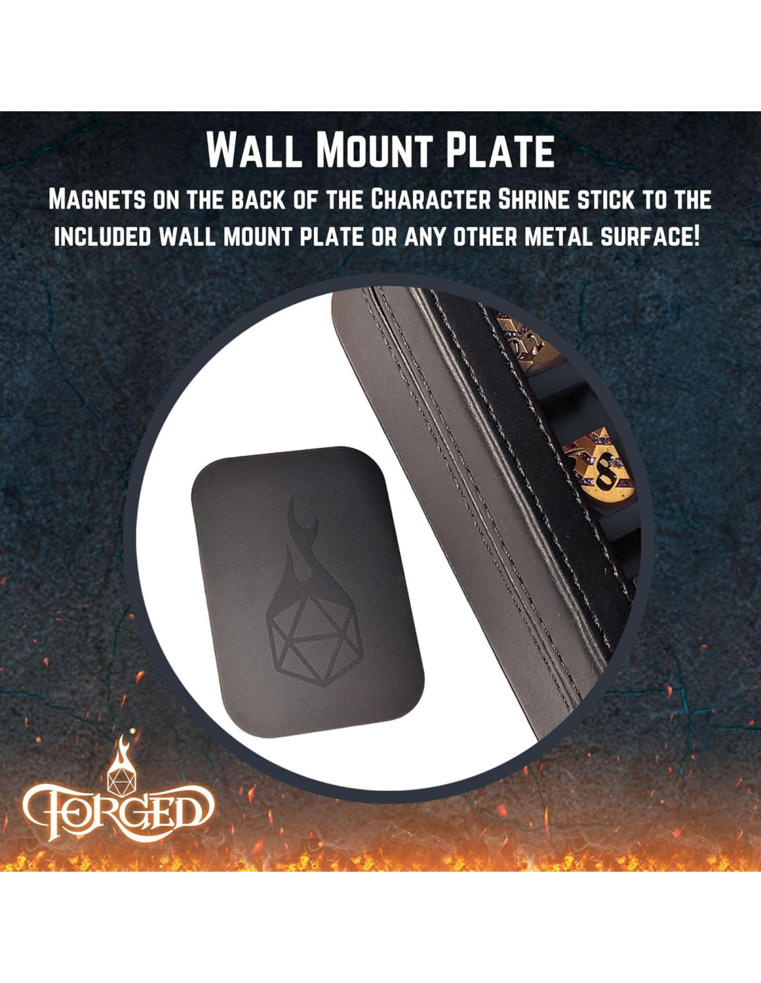 - Opciones de Exhibición Versátiles: Los imanes incrustados permiten que el estuche se adhiera a superficies metálicas ferrosas, montarse en el soporte removible para presentación en mesa y estantería, o en la placa metálica para pared con tira autoadhesiva, ofreciendo flexibilidad en la exhibición de tus dados de d&d