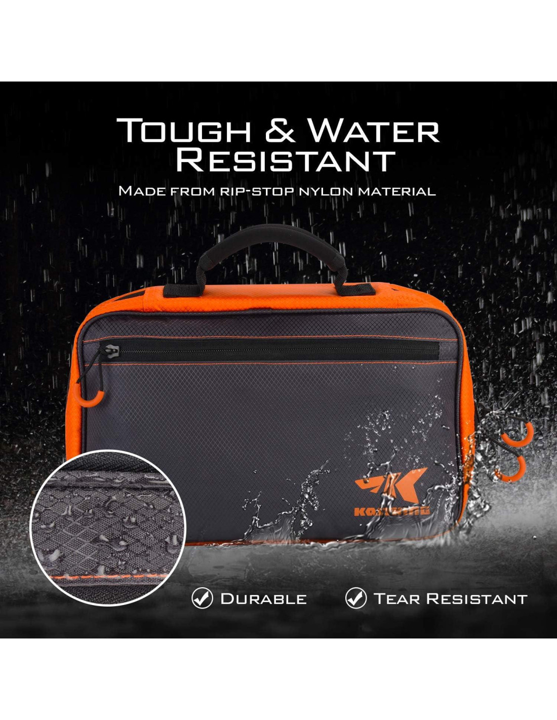 - Resistente y a prueba de agua - La bolsa de cebo Signature de KastKing está hecha de un material de nylon rip-stop 420D resistente para un rendimiento y fiabilidad excepcionales a largo plazo. Un recubrimiento hidrofóbico repele la humedad del exterior y una capa de PVC en el interior proporciona protección adicional para asegurar que tu equipo esté protegido de los elementos.