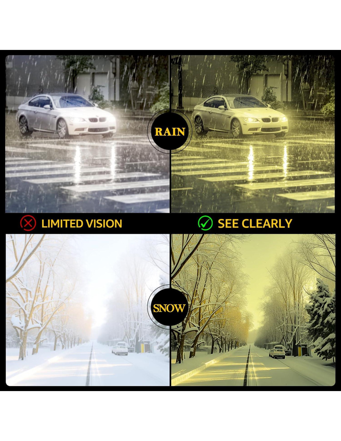 - VE CLARAMENTE CON GAFAS DE VISIÓN NOCTURNA: Estas modernas gafas con tinte amarillo te permiten ver más claramente al conducir de noche. Las lentes ligeramente tintadas filtran el deslumbramiento y mejoran el contraste y la percepción de profundidad en condiciones de poca luz
