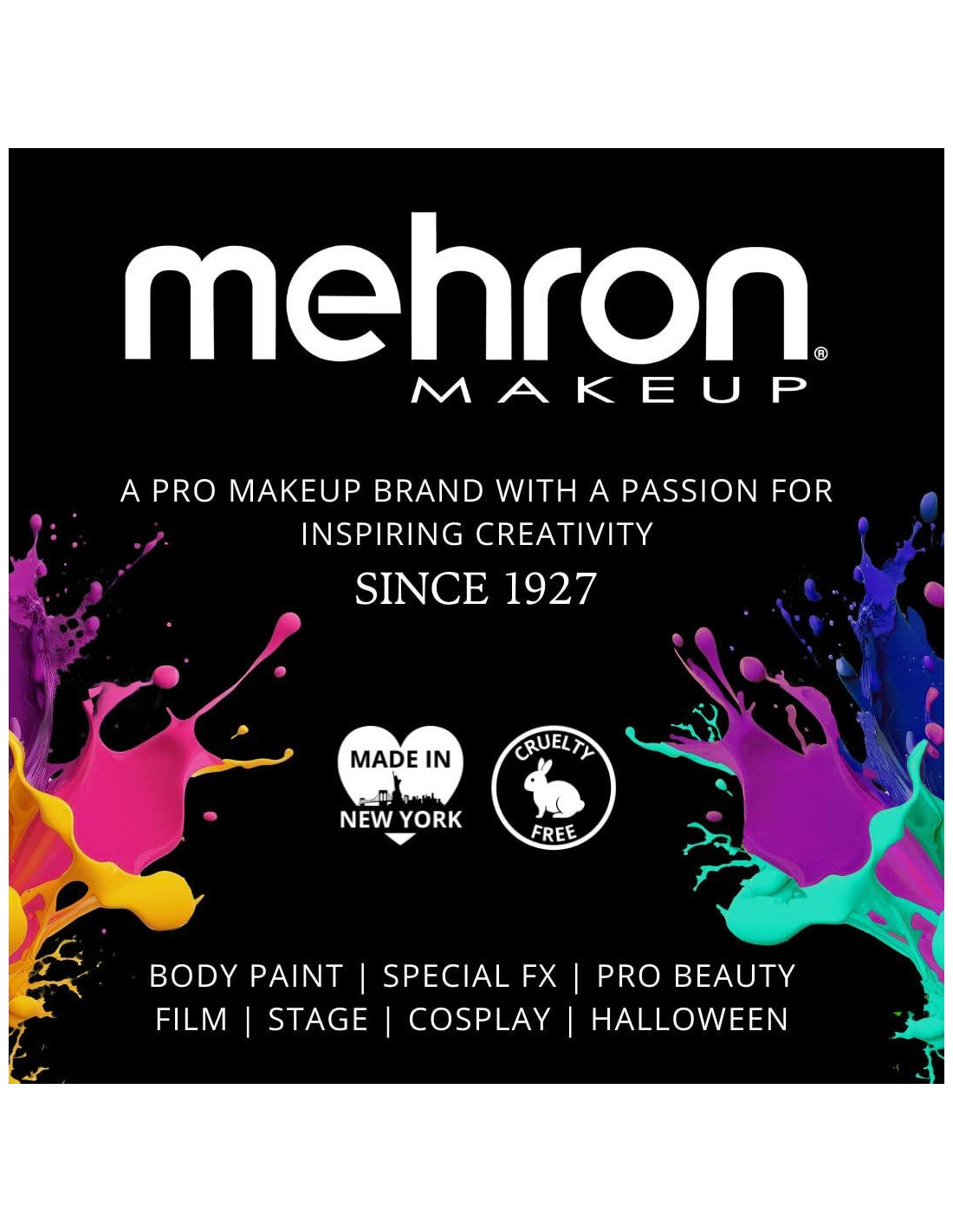 - ACERCA DE MEHRON: Durante más de 95 años, Mehron ha sido una empresa líder en la industria del maquillaje profesional con una pasión por inspirar la creatividad. Los cosméticos y productos de efectos especiales galardonados de Mehron se utilizan en la mayoría de las actuaciones en el escenario y en el cine en Hollywood, en Broadway y por artistas de todo el mundo. Mehron ha sido confiable por profesionales desde 1927 por tener los más altos estándares de seguridad, rendimiento y calidad. Los productos de Mehron se fabrican en los EE. UU. y siempre son libres de crueldad.
