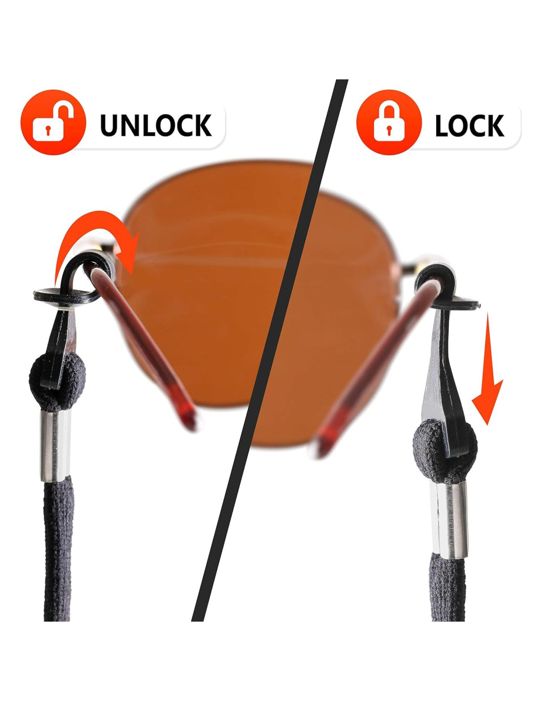 - Clip de Bucle Antideslizante Único - A diferencia de otros que no evitan que las gafas se deslicen, nuestro soporte de cuerda para gafas y correa para gafas viene con un mecanismo de protección de bucle avanzado para prevenir totalmente que tus gafas se caigan.