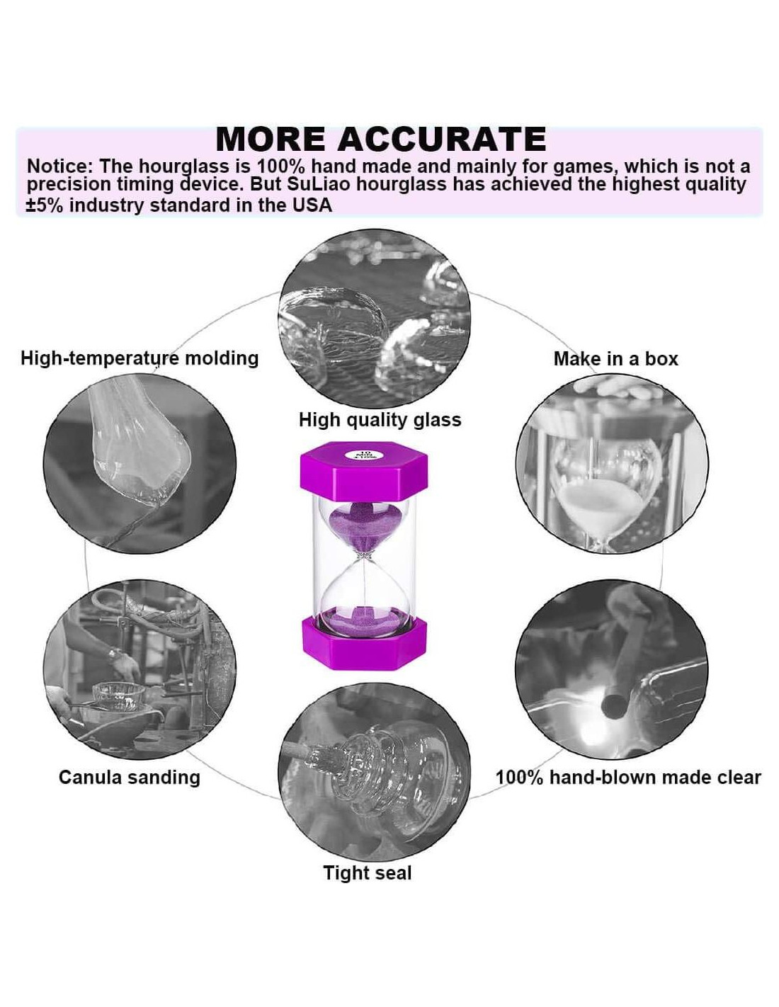 - Aviso: Este temporizador de huevo de 3 minutos es principalmente para juegos, que no es un dispositivo de temporización de precisión, por lo que hay una desviación de tiempo. Pero el reloj de arena SuLiao de 3 minutos ha alcanzado el estándar de calidad más alto +/-5% en la industria en EE. UU.