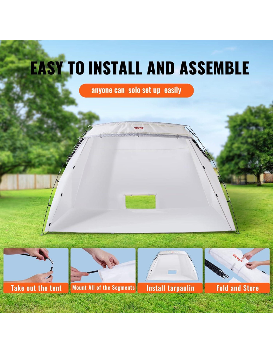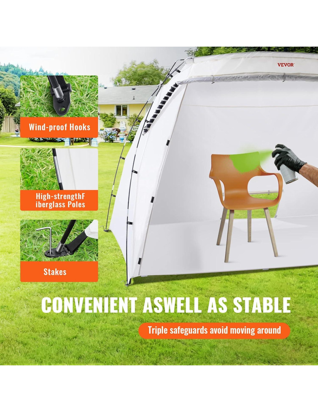 - Refugio de Pintura en Spray: La carpa de pintura portátil de VEVOR ofrece un área confinada para que los usuarios refinan muebles y manualidades con un pulverizador de pintura, aerógrafo o latas de aerosol. Mantiene el polvo y la suciedad alejados de la pintura húmeda. Te libera de la molestia de limpiar los derrames cuando terminas los trabajos.