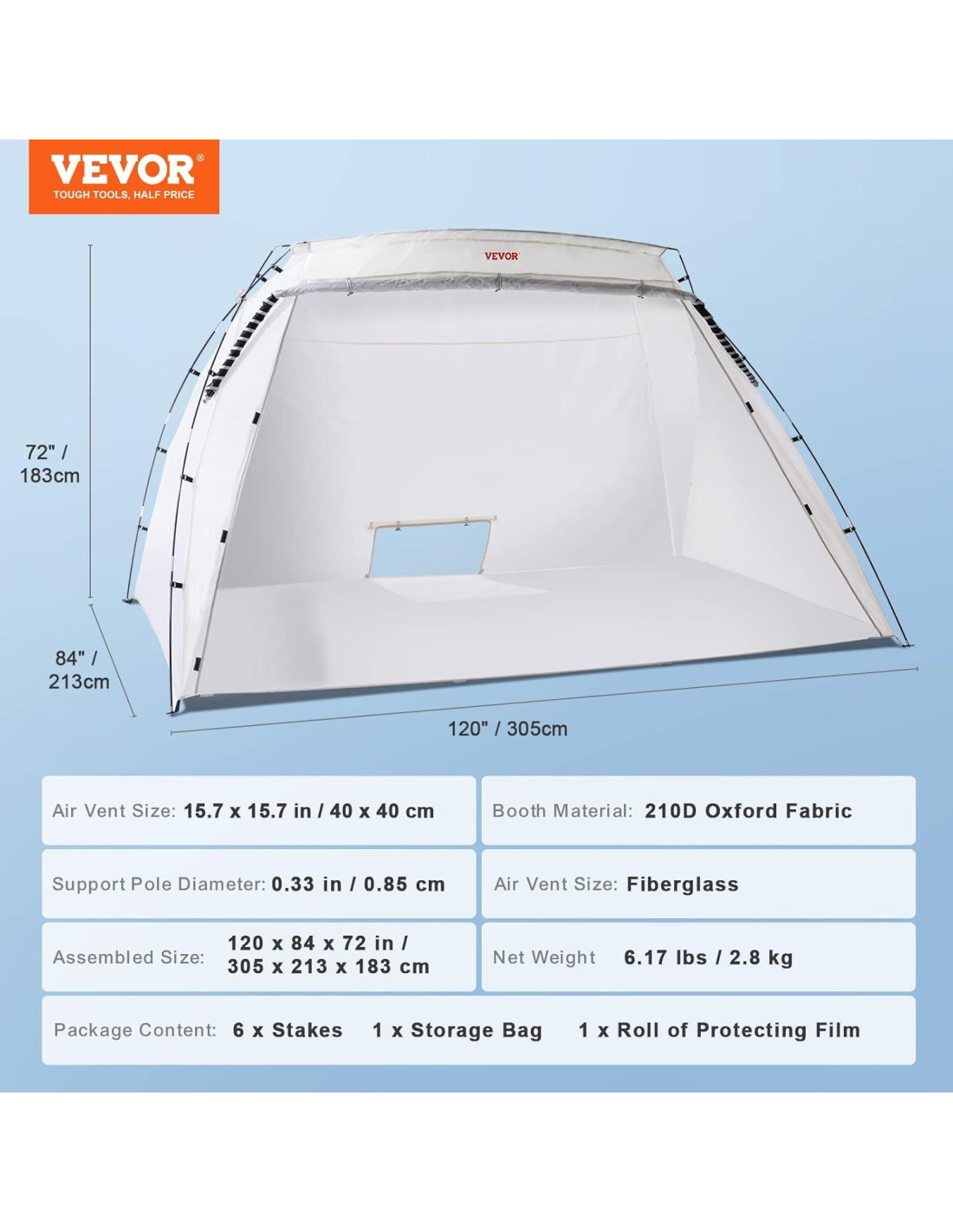 - Montaje Rápido: Solo necesitas sacar la carpa, montar los postes y colocar una película desechable para terminar la instalación. Cuando termines con esta carpa de pintura en spray, se pliega rápidamente y se guarda en la bolsa de almacenamiento que se proporciona para un fácil almacenamiento y uso la próxima vez.