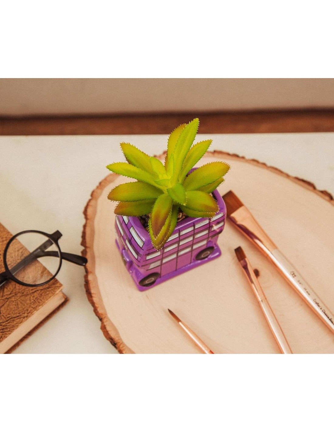 - ENCANTA A TU MAGO INTERIOR: Esta mini maceta en 3D está basada en el autobús caballero de tres pisos de Harry Potter. Esculpida a partir de un molde de cerámica duradera y brillante que tiene una suculenta realista brotando de la parte superior.
