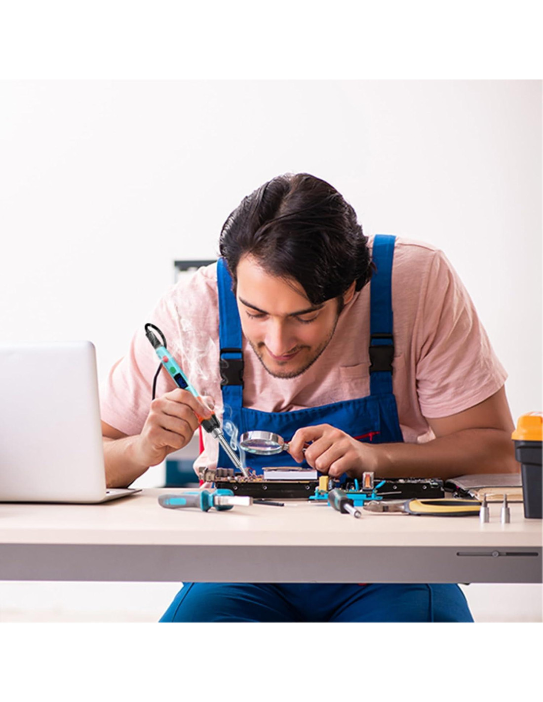 - [AMPLIAMENTE UTILIZADO] La herramienta de soldador se utiliza ampliamente en soldadura de PCB, reparación de equipos, placas de circuito, soldadura de joyas, soldadura de manualidades, bricolaje, computadoras, electrodomésticos, reparación de teléfonos y otros campos. Perfecto para principiantes, soldadores, equipos básicos del hogar, ingenieros de soldadura y otras capacitaciones.