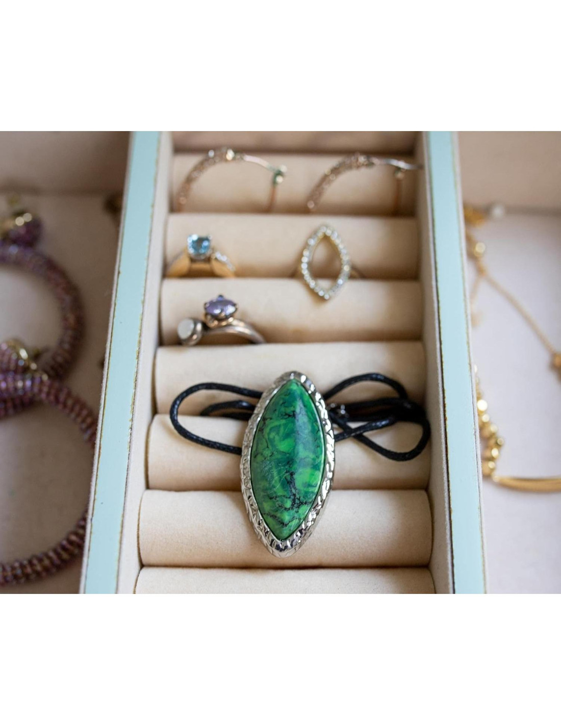 - Calidad magistral: Elaborado con materiales de grado profesional, este collar de acero inoxidable presenta un colgante verde ovalado. Esta réplica de prop que se puede usar cuelga de un duradero cordón de cuero.