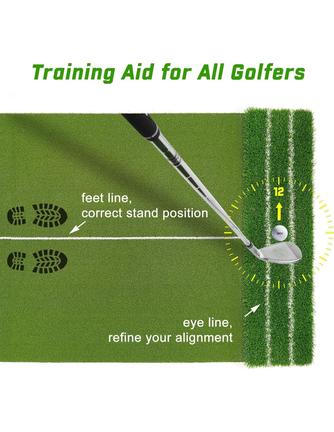- [Ayuda de Entrenamiento para Golfistas de Todos los Niveles] Las líneas de alineación integradas proporcionan retroalimentación instantánea, ayudando a golfistas de todos los niveles a mejorar la precisión del swing, la consistencia y el rendimiento general. Ya sea que estés comenzando o refinando tus habilidades, nuestra alfombra de golf es tu compañera de confianza.