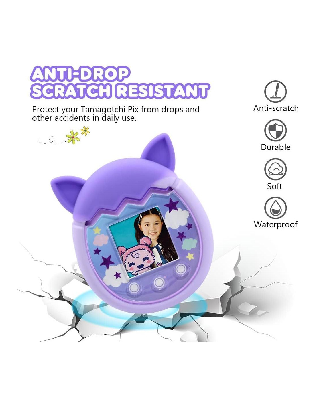 - [Material Premium] Funda protectora de silicona premium para Tamagotchi Pix, suave y duradera, antideslizante, a prueba de golpes, agarre cómodo y lavable. Esta funda de silicona es muy fácil de instalar y usar.
