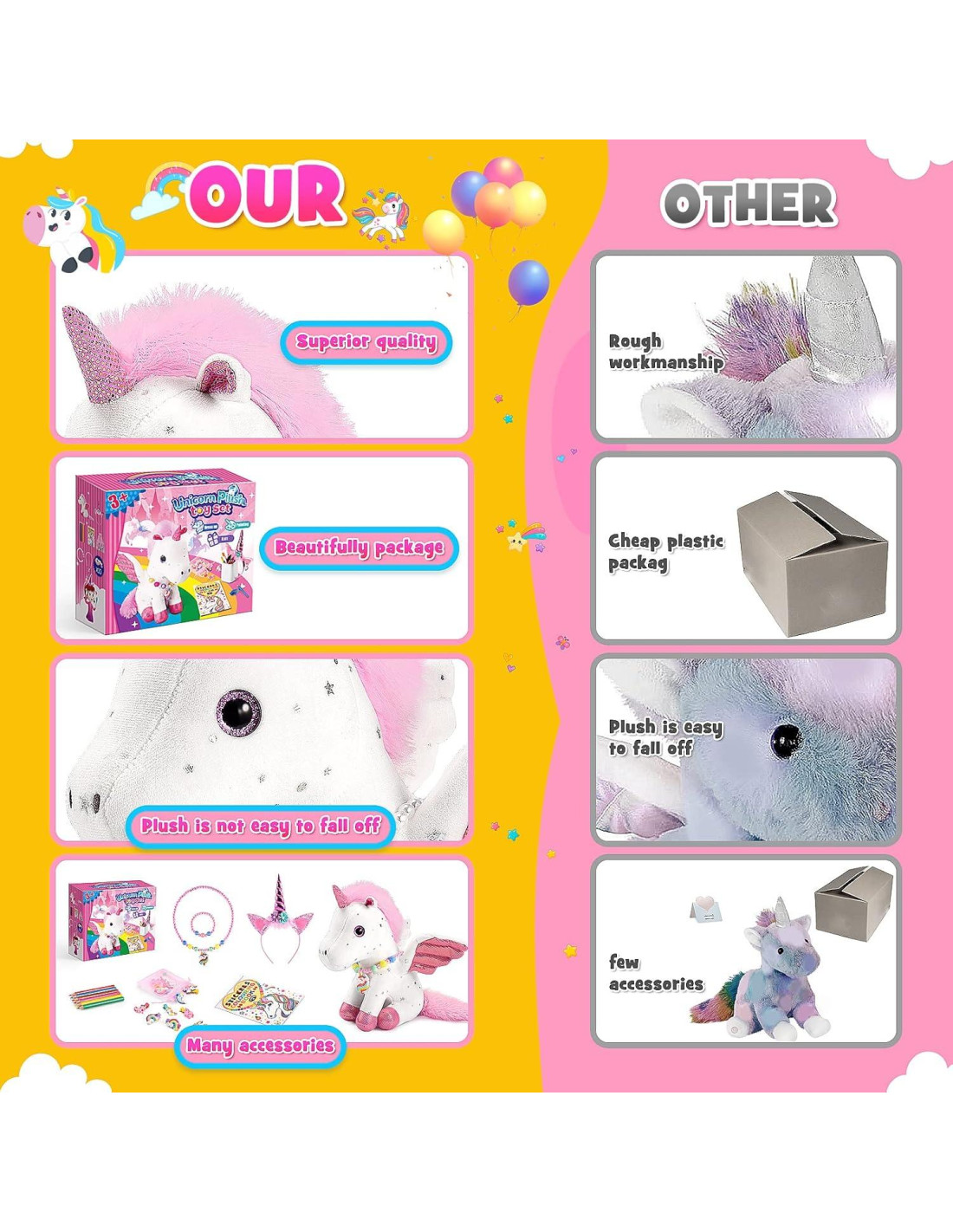 - Materiales Premium Seguros y Listos para Abrazar: Nuestro peluche de unicornio está hecho con tela super suave e hipoalergénica para abrazos interminables (¡y hasta abrazos a la hora de dormir!). El libro para colorear resistente a desgarros y los accesorios irrompibles están probados para sobrevivir a las aventuras de las citas de juego. Sin partes endebles - solo diversión segura y duradera en la que los padres pueden confiar!