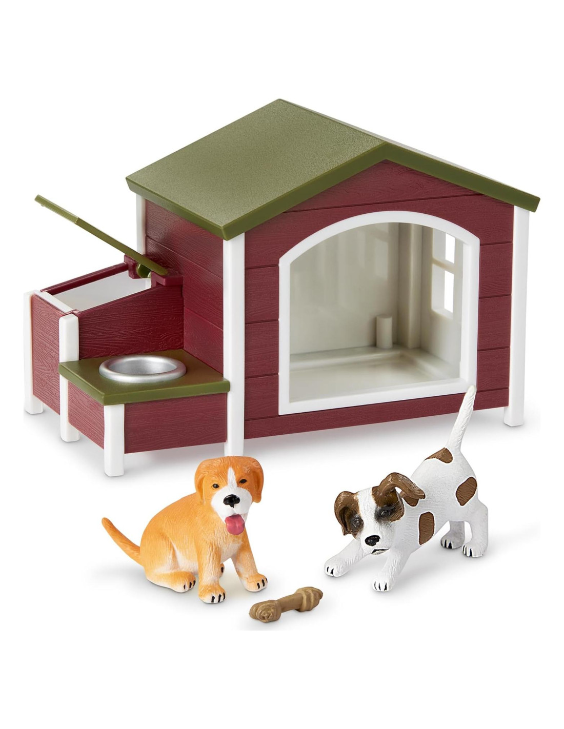 - Incluye: 2 cachorros de juguete en miniatura, 1 casa de perro de juguete con tazón para perro y contenedor de almacenamiento, 1 hueso