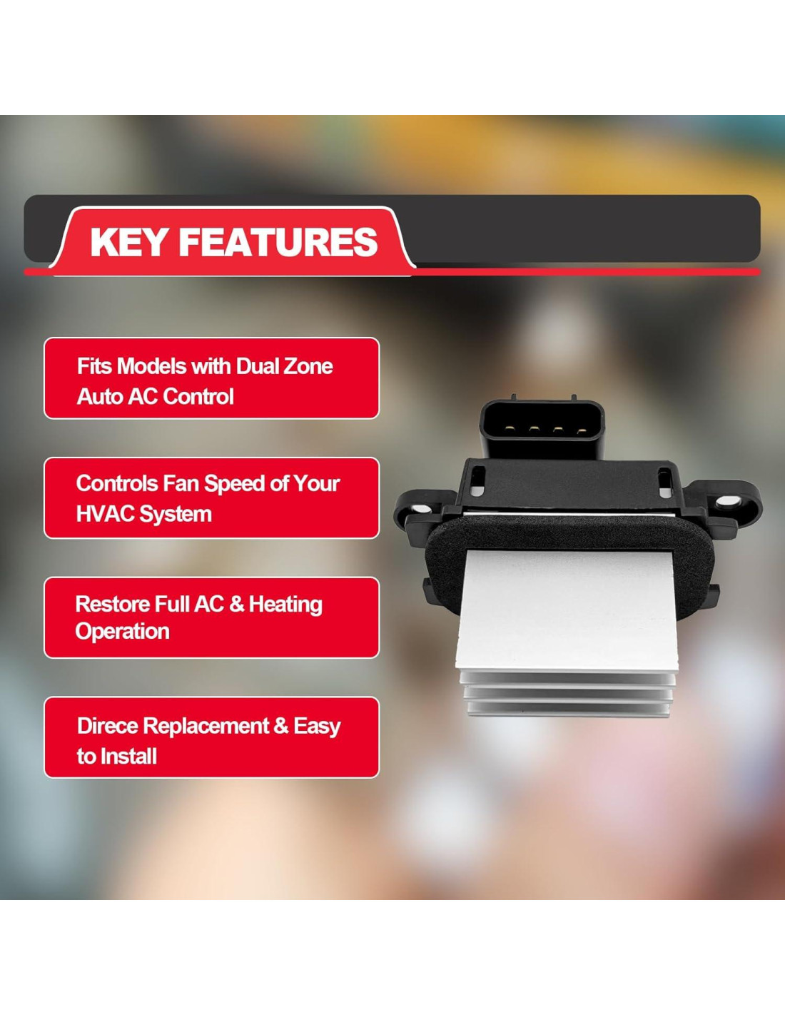 Resistor de Motor de Soplador HVAC Módulo de Control de Soplador AC BL3Z-19E624-A Compatible con 2009-2017 Ford Expedition Compatible con 2009-2014 Ford F150 Compatible con 2009-2017 Lincoln Navigator (Solo se ajusta a modelos con control de AC automático de doble zona) Reemplaza: Compatible con BL3Z-19E624-A Motorcraft YH-1829, YH-2060 WVE 4P1803 SMP RU893 Dorman 973-399 UMP BMR112 UAC SW11378C VEMO V25790028 Por favor, verifique amablemente la MARCA/MODELO de su vehículo antes de comprar para asegurarse de que nuestros productos sean adecuados para su vehículo.