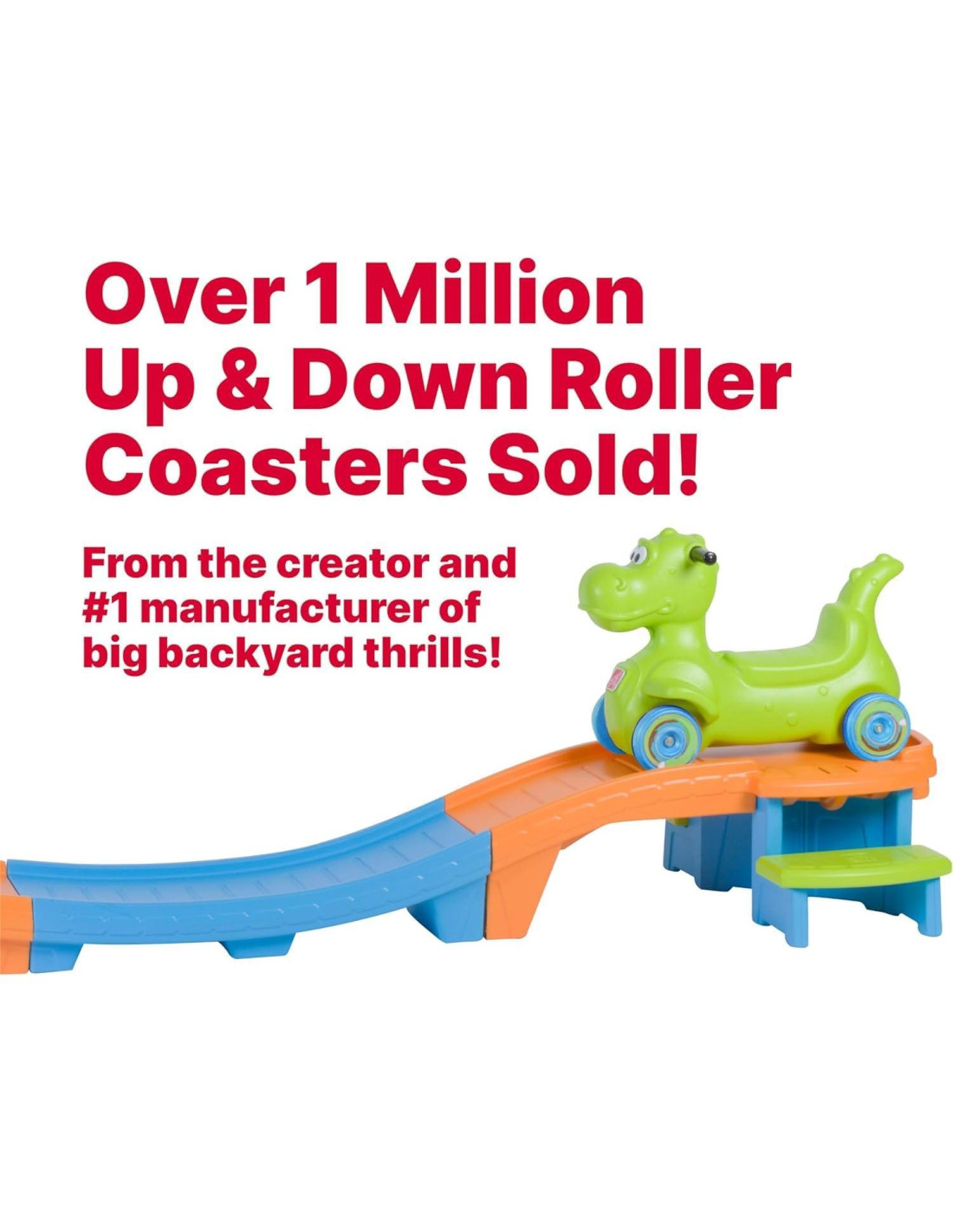 - ACTIVIDAD SENSORIAL: Deja que tu pequeño se deslice por la pista de montaña rusa de 9 pies (2,74 m) de largo en el coche de montaña rusa dinosaurio, suba escaleras, movimiento interactivo