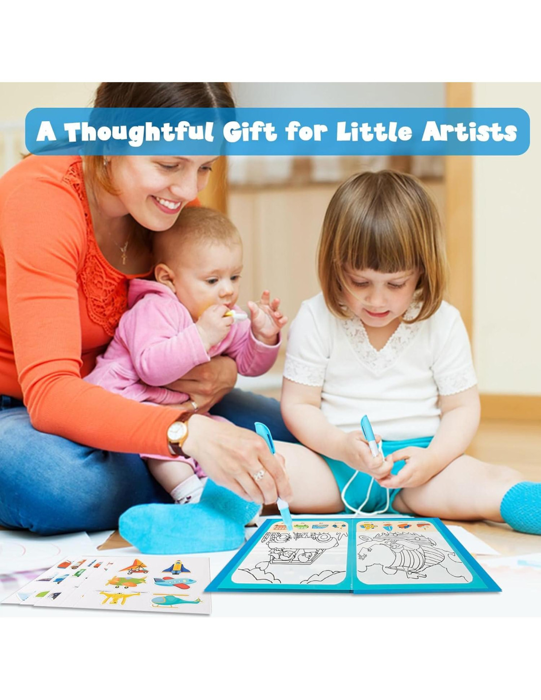 - [Sin desorden, juego reutilizable] ¡Solo agrega agua para revelar colores vibrantes! Este conjunto incluye páginas y pegatinas reutilizables, asegurando horas de diversión limpia e imaginativa, ideal para el hogar y los viajes.