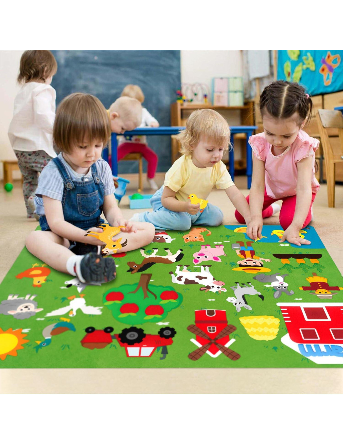 - KIT DE JUGUETES EDUCATIVOS CON TEMA DE GRANJA: Kit de juguetes de animales domésticos de fieltro gigante de 3.5 pies (106,68 cm) con 33 piezas de fieltro de tamaño cómodo para manos pequeñas. Estas piezas de fieltro interactivas se pueden mover repetidamente en el tablero de fieltro. Con 4 ganchos resistentes adjuntos, el gran tablero de fondo de fieltro se puede colgar fácilmente.