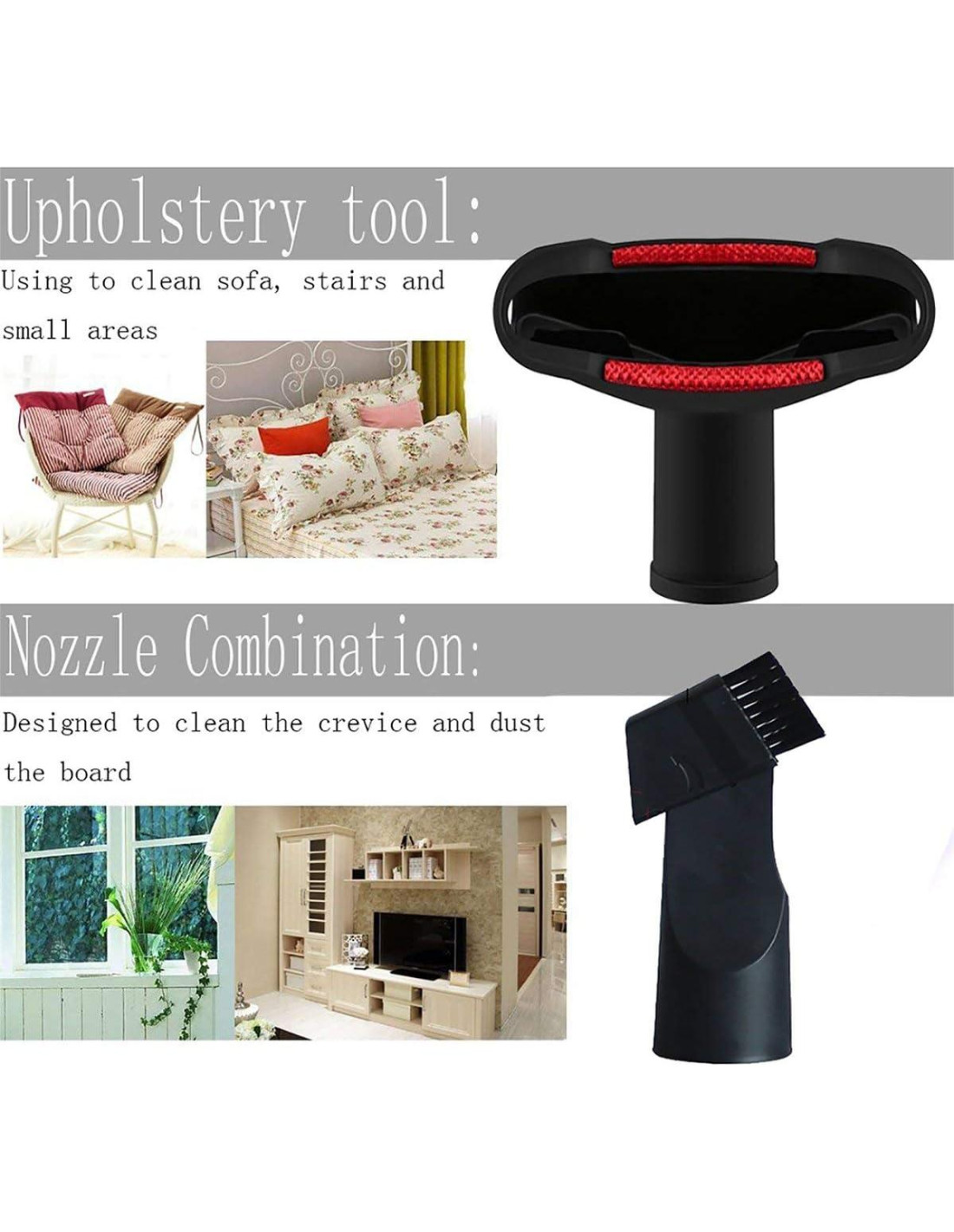 Adaptador de Manguera de 1-3/8''(35mm) a 1-1/4''(32mm): incluye un adaptador para permitir su uso en una boquilla de 1-1/4" o 1-3/8". ¡El adaptador es la clave! Usando la pieza de adaptador incluida, todas las partes encajan/funcionan como se describe. Herramienta de hendidura de aspiradora húmeda o seca de 1-1/4 pulgadas: para limpiar espacios reducidos. Boquilla de utilidad de 1-1/4 pulgadas con cepillo de plástico: para limpieza de pisos. Cepillo redondo de cerdas de pelo de caballo de 1-1/4 pulgadas: para limpiar y quitar el polvo de mesas y encimeras, rejillas de aire y calefacción. Herramienta de Combinación de Boquilla de 1-1/4 pulgadas: limpiar el coche y las grietas. Herramienta de tapicería de 1-1/4 pulgadas: para limpiar sofás, escaleras y áreas pequeñas.