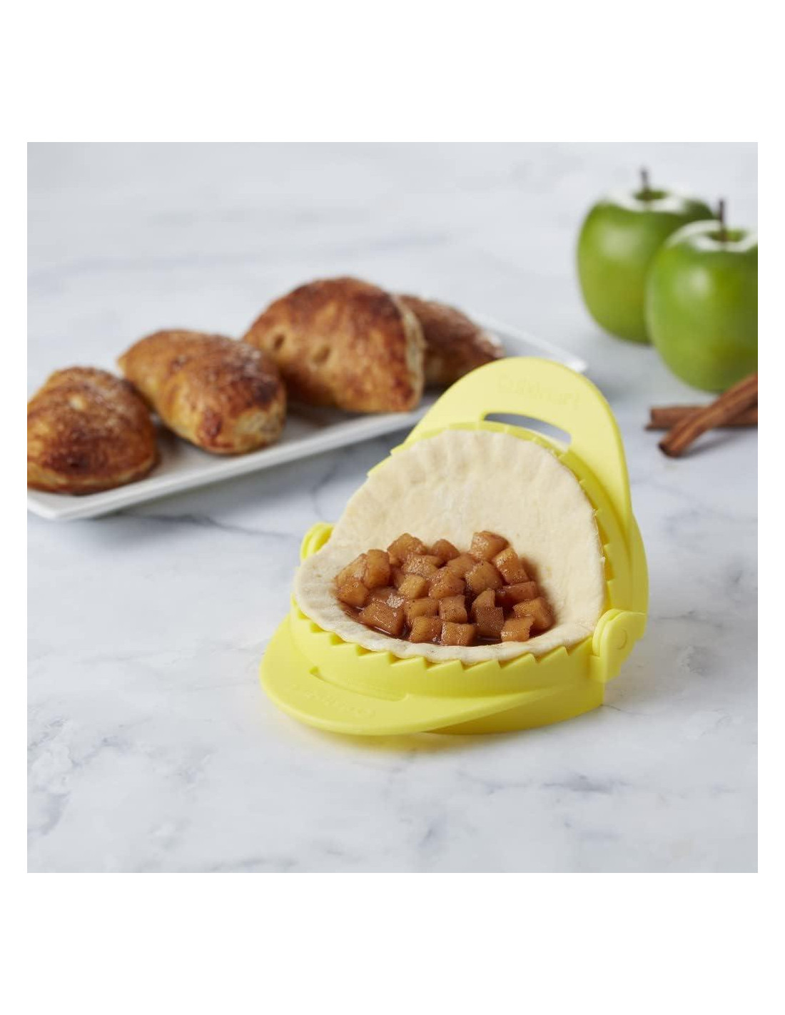 Empanadas dulces y saladas, empanadas, hamburguesas, sándwiches, pierogis, mini pasteles y pizzas son divertidos de preparar y más divertidos de comer con el Set de Prensadores de Empanadas Cuisinart de 2 Piezas. Con los prensadores de tamaño pequeño y mediano que se anidan para un almacenamiento compacto y conveniente, puedes crear bocados personalizados para manos grandes y pequeñas. Cada uno tiene un cortador incorporado que prepara un círculo de masa que encaja perfectamente en el prensador. Coloca una cucharada de tu propio relleno saludable y casero en el centro de la masa, dobla el prensador, presiona y sella los bordes con un apretón firme, ¡y tu creación está lista para cocinar y comer! Disfruta de infinitas posibilidades para crear alimentos cocinados que se pliegan y que hacen la comida, el bocadillo y el aperitivo perfectos.