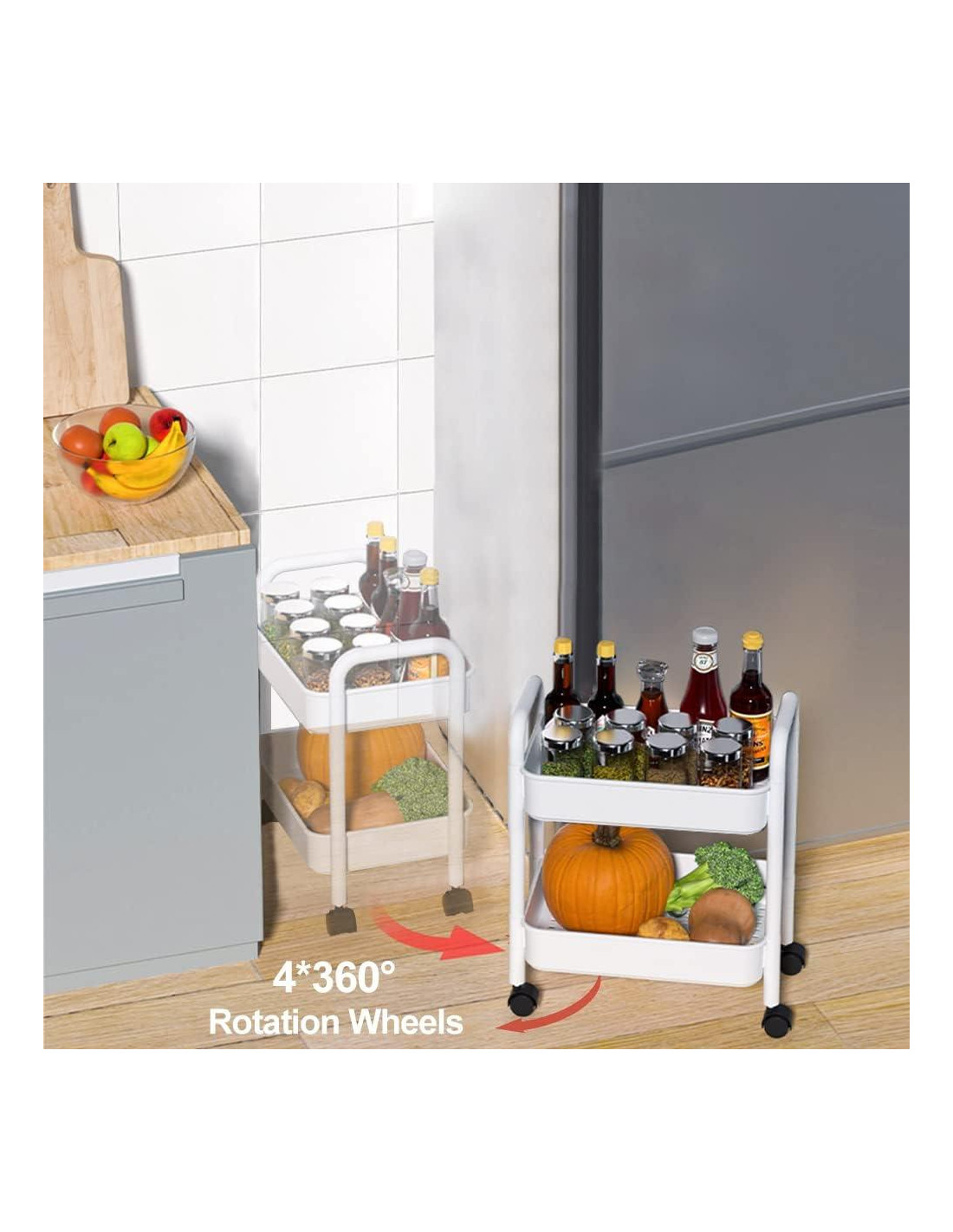 - [Almacenamiento Multifuncional] -- Este carro de almacenamiento rodante de 2 niveles tiene múltiples funciones que se pueden usar en cualquier lugar que desees, como oficina, baño, cocina, estudio de arte, salón, jardín, garajes, lavanderías, áreas de pasatiempos y manualidades, etc. Puede usarse como carro de herramientas, estante de organización, mesa lateral para sofá o cama, mesita de noche, carro de libros, carro de almacenamiento para dormitorio/sala de estar, etc.