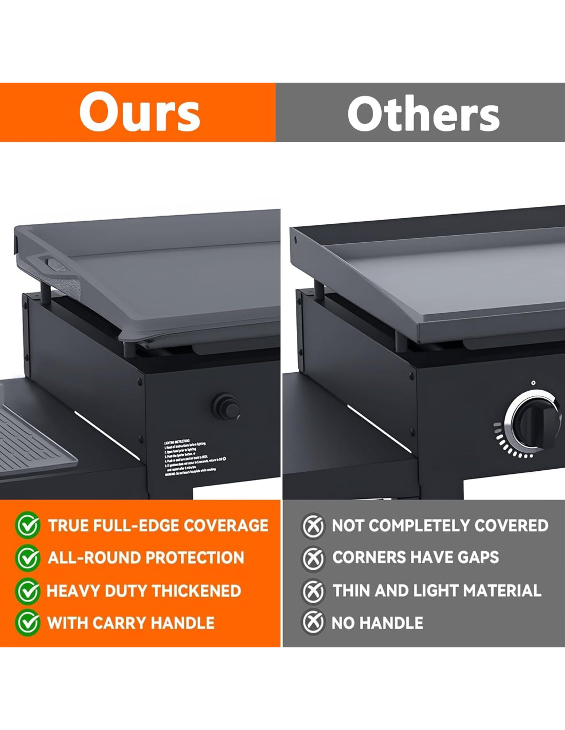 - [Protección de borde completo mejorada] Nuestro tapete de silicona para plancha Blackstone mejorado adopta un diseño de borde completo, proporciona protección integral para su plancha, previniendo daños de roedores, insectos, polvo, escombros y óxido. También puede retener humedad y escombros, protegiendo aún más la superficie de la plancha de la contaminación