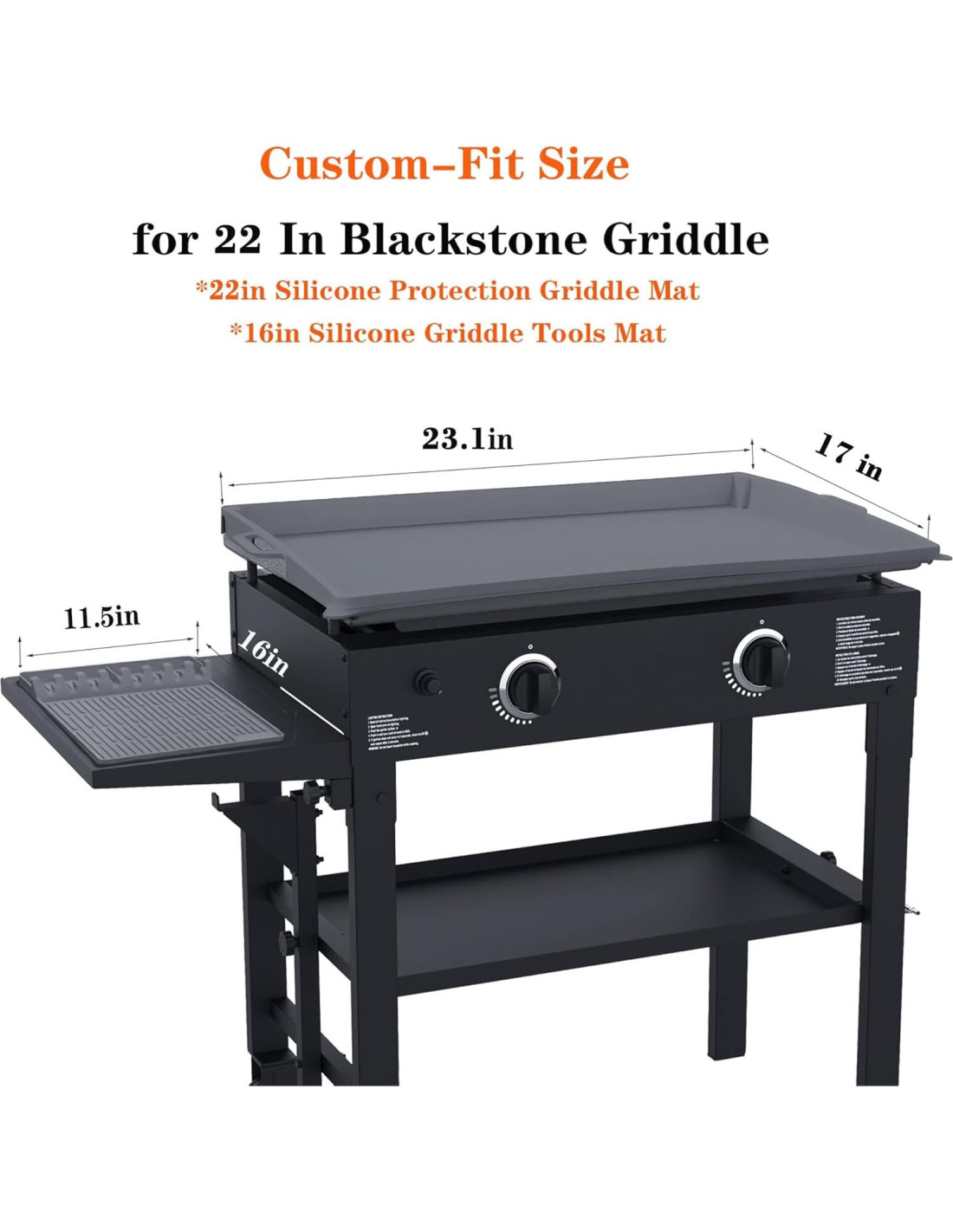 - [Ajuste personalizado para plancha Blackstone de 22 pulgadas] El tapete para plancha está diseñado a medida para ajustarse a la plancha Blackstone de 22 pulgadas, se ajusta perfectamente a la superficie de la plancha, asegurando que no se tambalee ni se deslice, maximizando la protección