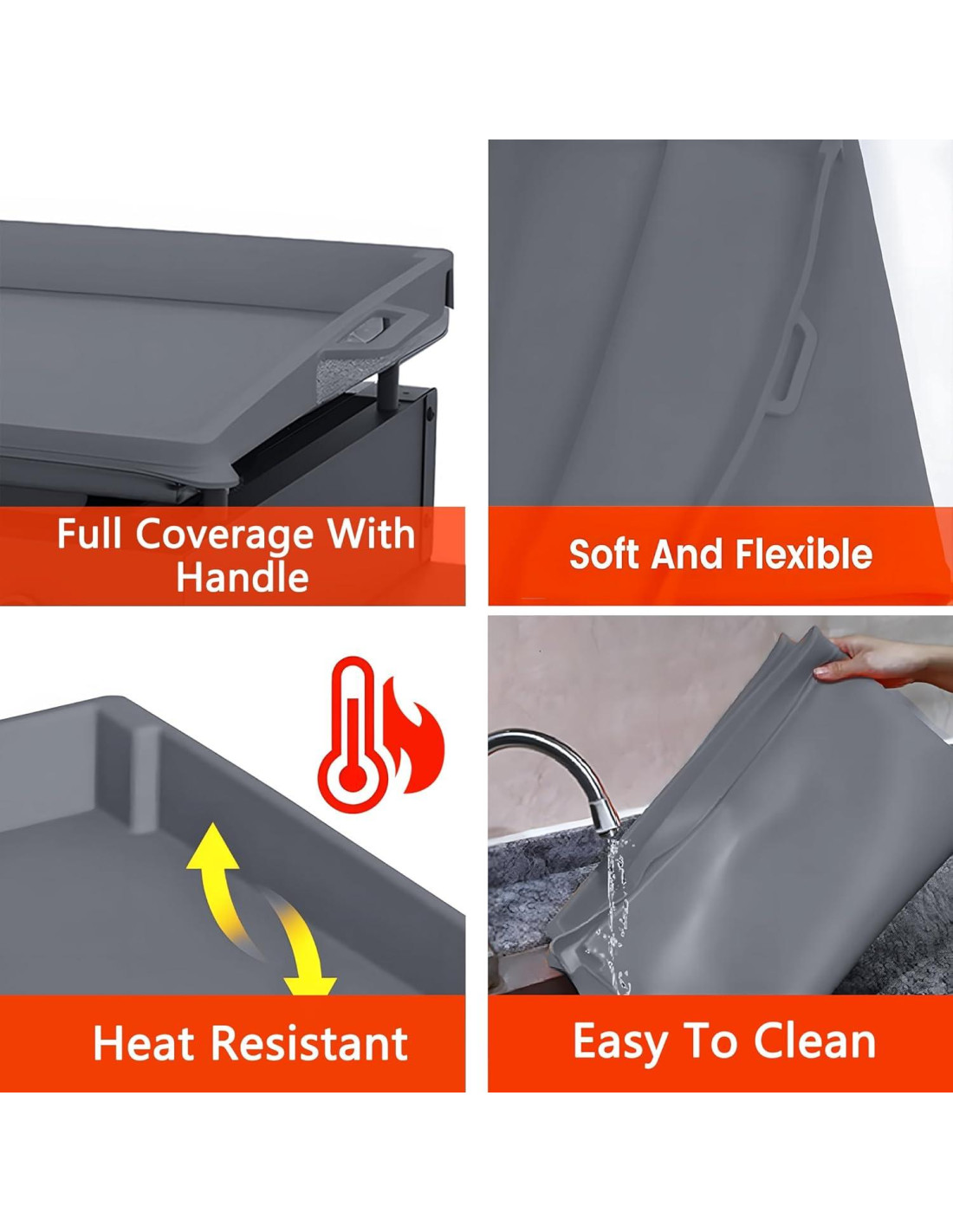 - [Silicona de grado alimenticio] Ambos tapetes para plancha de la parrilla Blackstone están hechos de silicona de grado alimenticio de alta calidad al 100%, que es duradera, flexible, suave, segura y confiable, resistente al calor hasta 400F (204C). Puede usarlos con tranquilidad