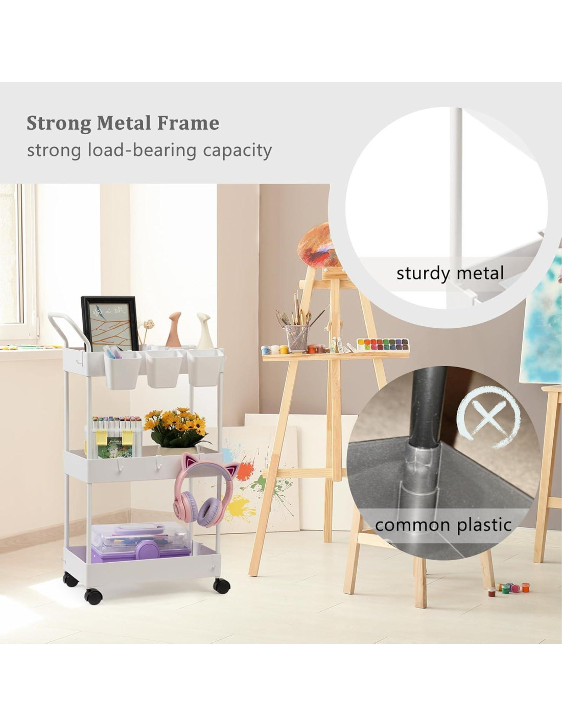 - Carro de Utilidad Versátil: Este carro estrecho podría ser un carro de baño y funciona bien como un carro de lavandería, un organizador de carrito para bebés, un carro de bocadillos para niños, un carro de maquillaje y un estante de especias. También puede colocarse junto al refrigerador en espacios estrechos para proporcionar almacenamiento.