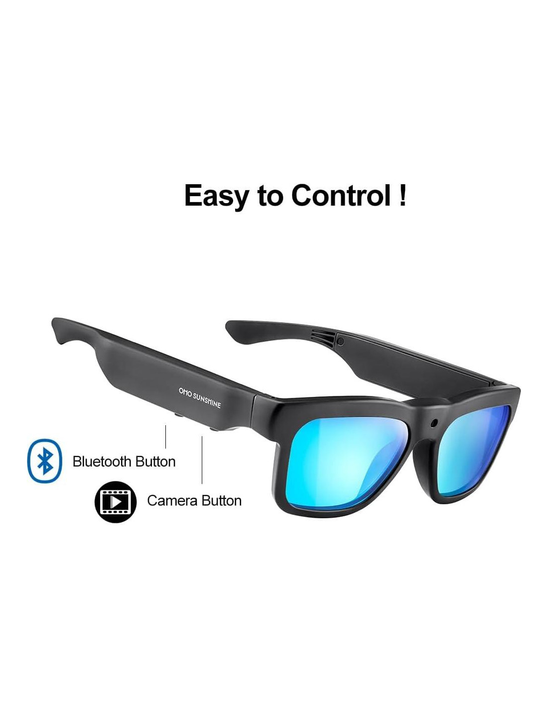 Las Gafas OhO incorporan dos sistemas, grabación de cámara y auriculares Bluetooth, ambas funciones pueden usarse al mismo tiempo o por separado con diferentes botones de control en las gafas. Bluetooth es para escuchar música y llamadas telefónicas con altavoces de oído abierto integrados en ambos brazos, la cámara puede grabar videos nítidos y claros en full HD 1080P y capturar secciones de video destacadas durante tus aventuras deportivas, ya sea leyendo, jugando, relajándote, cazando, pescando, escalando rocas o deportes en motocicleta, lo que es perfecto para capturar tomas de acción rápida con movimiento fluido. Las gafas con cámara capturan un amplio campo de visión, pueden capturar más de lo que ve tu ojo.