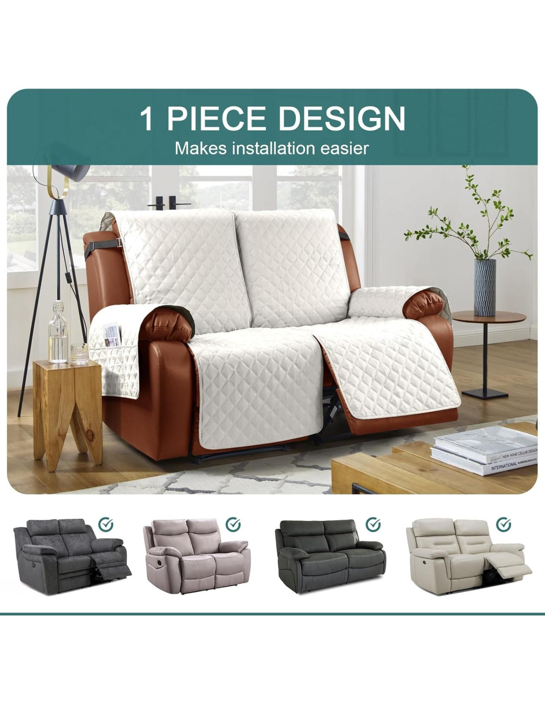 - SE MANTIENE EN SU LUGAR: Diseño de coloide redondo sólido en la parte posterior de nuestra cubierta de sofá reclinable para reducir el deslizamiento; Correas elásticas en la parte superior aseguran la parte trasera del sofá; Banda elástica en el asiento con hebillas redondas mejora la resistencia al deslizamiento; Y las tiras de espuma pueden fijar mejor tu área de asiento. Se mantiene en su lugar incluso en muebles de cuero.